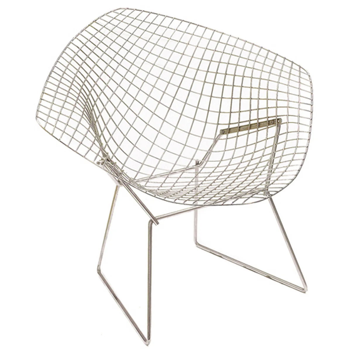 Peu importe qu'il soit chromé, satiné ou avec une finition en plastique (couche protectrice Rilsan), le cannage métallique du Diamond Chair conçu par Harry Bertoia et produit par Knoll était le modèle pour des générations de jeunes designers ambitieux.