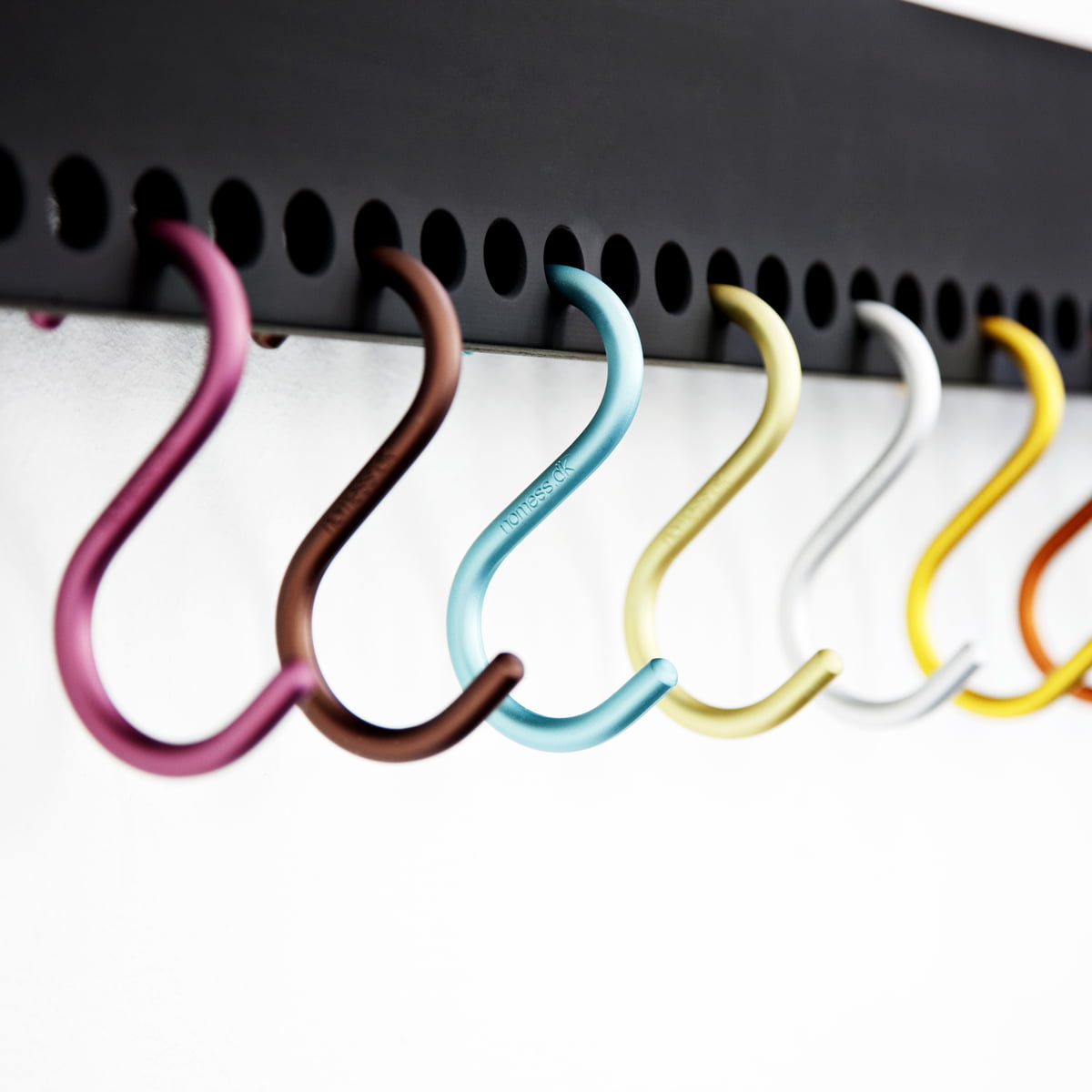 Comme son nom l'indique, le portemanteau mural So-Hooked de Nomess Copenhagen est une tringle sobre à laquelle les crochets en forme de S du portemanteau peuvent être accrochés. Nomess séduit de nouveau avec un objet design simple, fonctionnel et polyvalent.