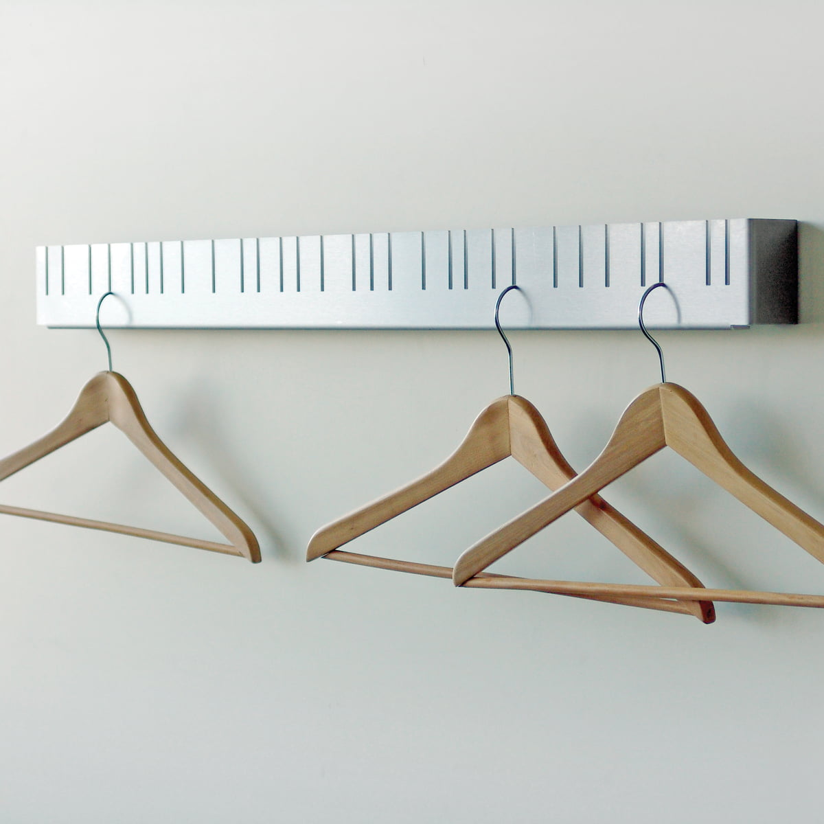 La tringle porte-manteau fut créée par les deux designers Christoph Schindler et Margarita Salmerón Espinosa. Le porte-manteau inhabituel offre la place pour les vêtements et les cintres, selon la longueur choisie, et se fond, par son apparence sobre, dans les espaces privés comme publics.