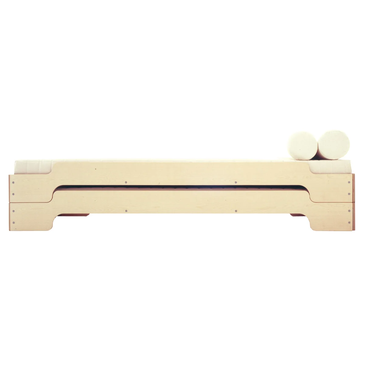 Le lit empilable peut également être livré à une hauteur confortable (50 centimètres empilé) et dans des dimensions spéciales (largeur : 80/120/140 centimètres ; longueur : 210/220 centimètres).