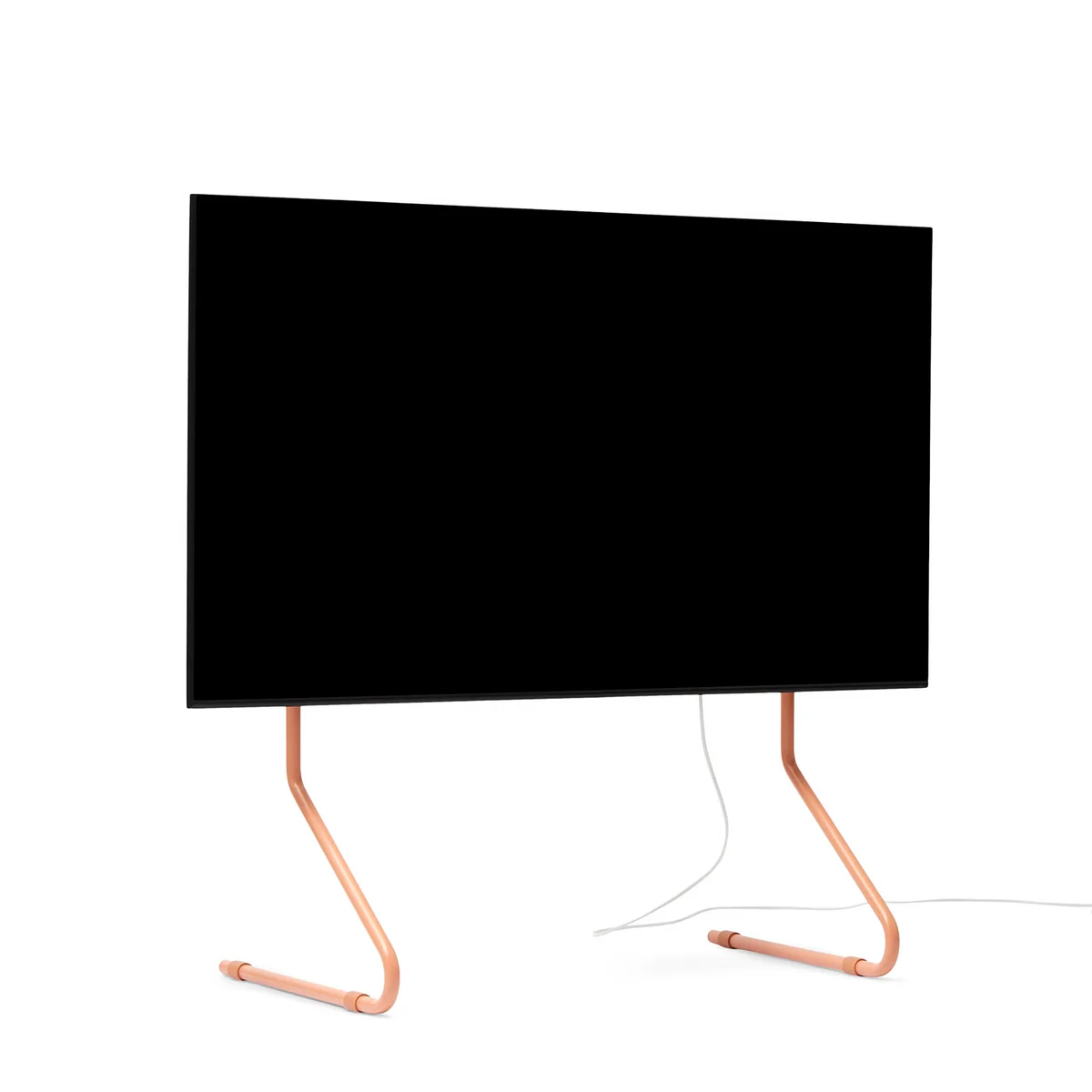 Le support TV Sway de Pedestal se distingue par son design élancé et minimaliste. Fabriqué en bois ou en métal de haute qualité, il présente une silhouette claire et sobre qui s'intègre parfaitement dans les intérieurs modernes. La surface lisse et la finesse des détails confèrent à ce support une élégance intemporelle qui complète avec style l'espace télévision.
