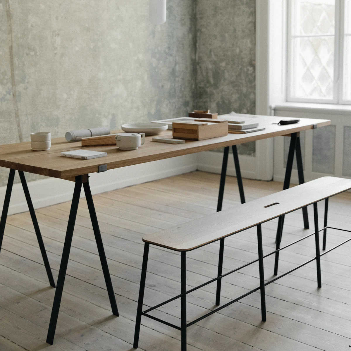 Le Adam banc de Frama représente l'esthétique classique du design industriel et incarne un look sobre et discret. Son aspect rend hommage aux matériaux solides et à la grande fonctionnalité. Son joli design robuste se prête très bien à une combinaison avec une table à manger et à un positionnement dans un couloir ou un grand corridor. Le Adam banc est une pièce intemporelle pour le quotidien. En raison des caractéristiques du chêne massif, l'assise peut varier et changer au fil du temps. Ainsi, le banc se transforme en un meuble individuel.