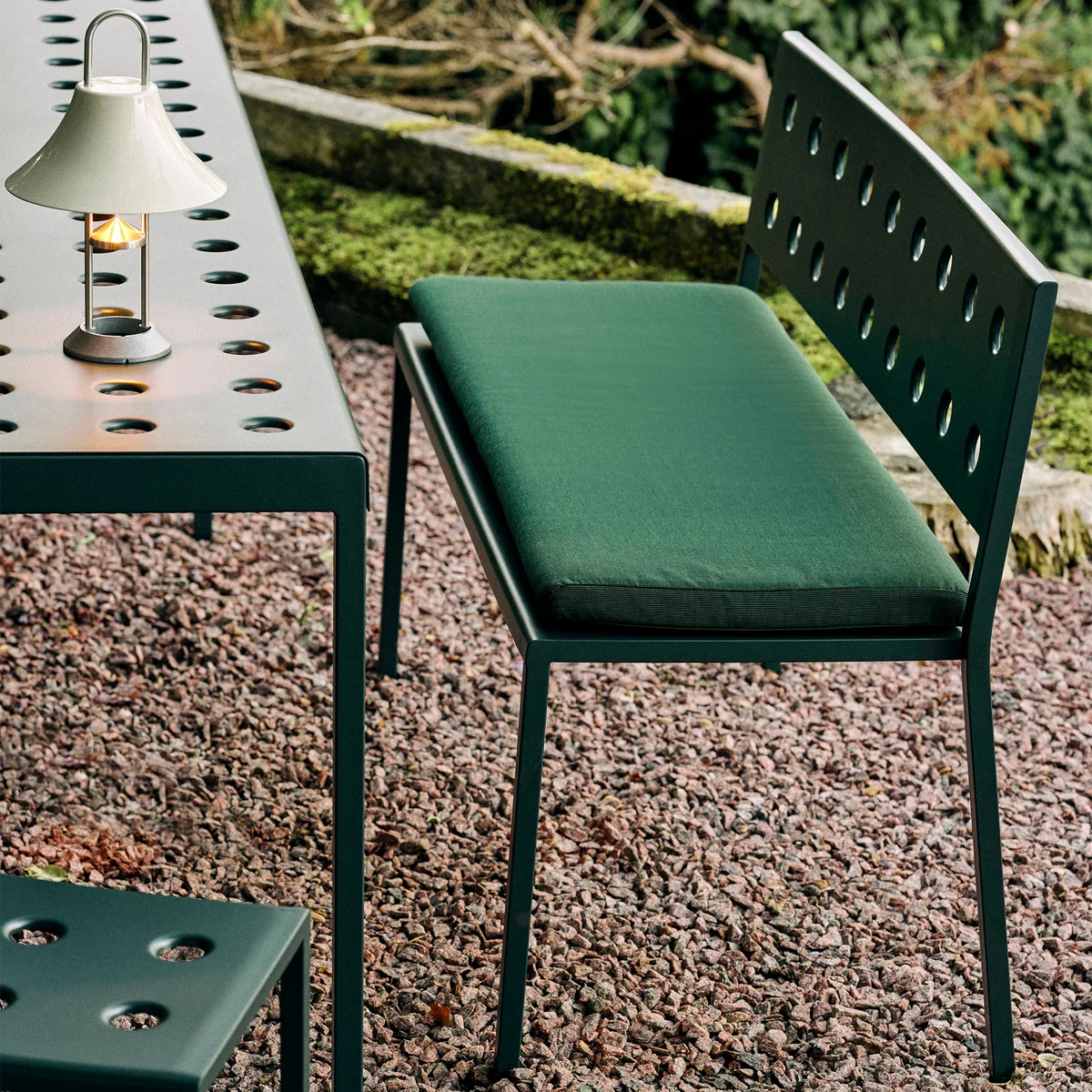 Le Balcony Lounge Bank du duo de designers Ronan et Erwan Bouroullec pour HAY est un siège très élégant et confortable pour l'extérieur. Le design anguleux a un look décontracté grâce à ses pieds fins. Les trous sur l'assise et le dossier renforcent la structure du banc tout en attirant l'attention. Balcony Lounge est fabriqué en acier peint par poudrage. L'apprêt permet au banc de résister de manière optimale au vent et aux intempéries. Disponible en différentes couleurs.