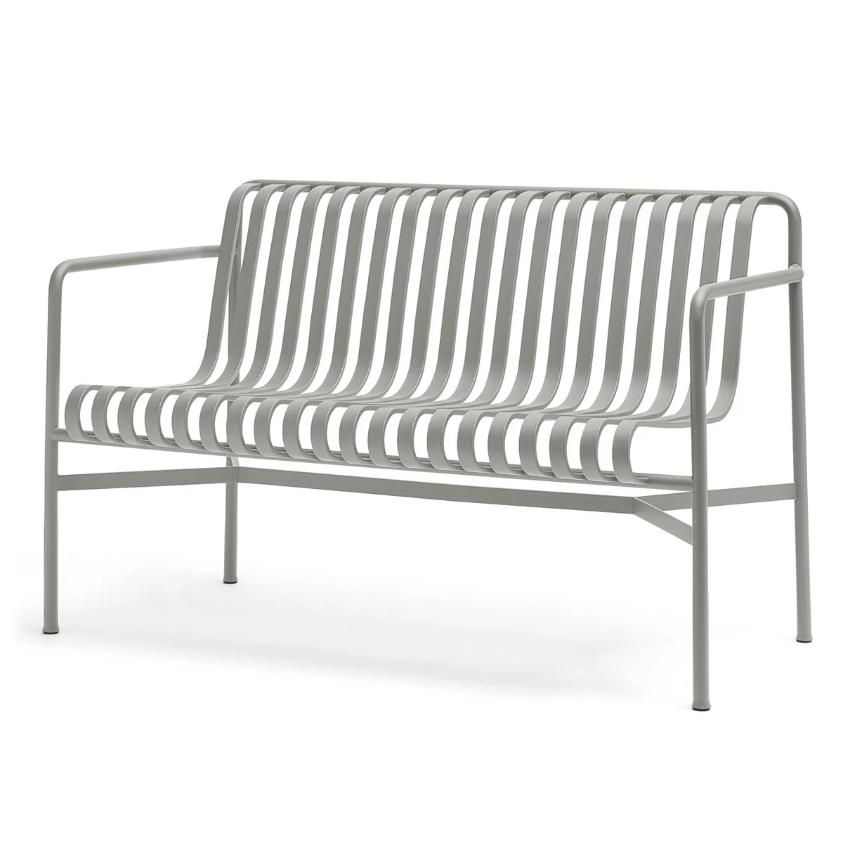 Le banc Palissade Dining de HAY est un banc de jardin qui convient parfaitement aux agréables soirées barbecue dans le jardin. Avec son dossier et ses accoudoirs, ce banc offre un grand confort. La forme ergonomique du banc permet de s'y adosser confortablement, même sans rembourrage.