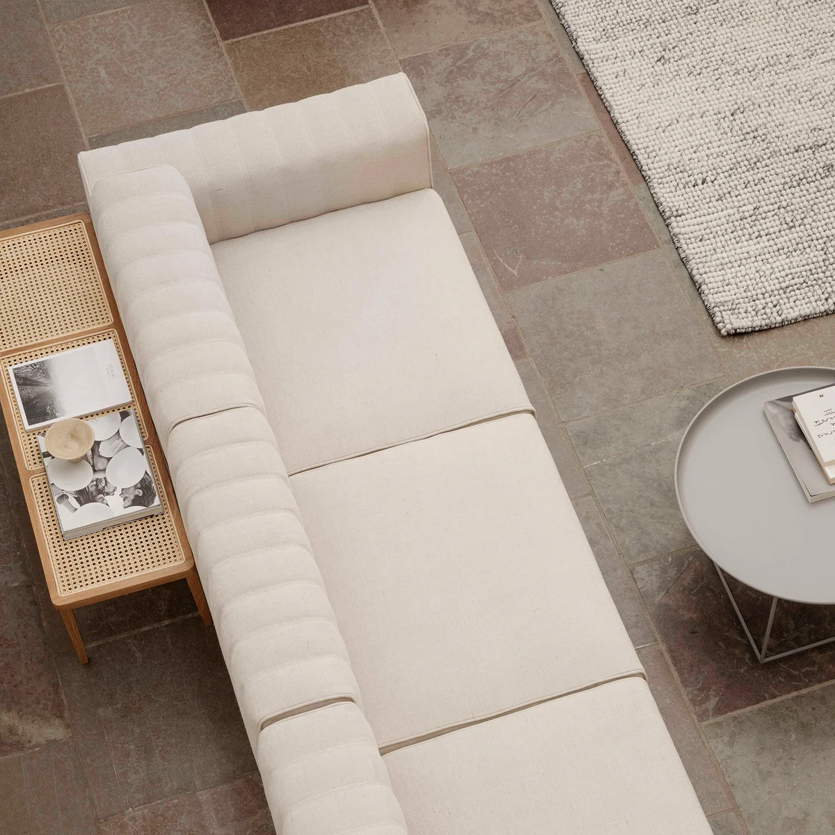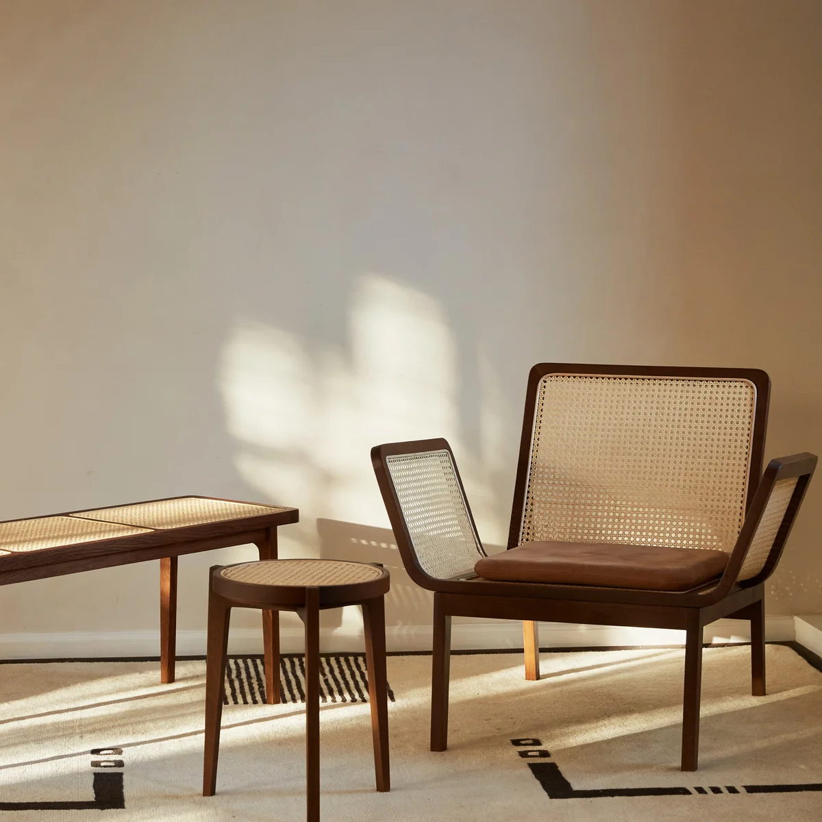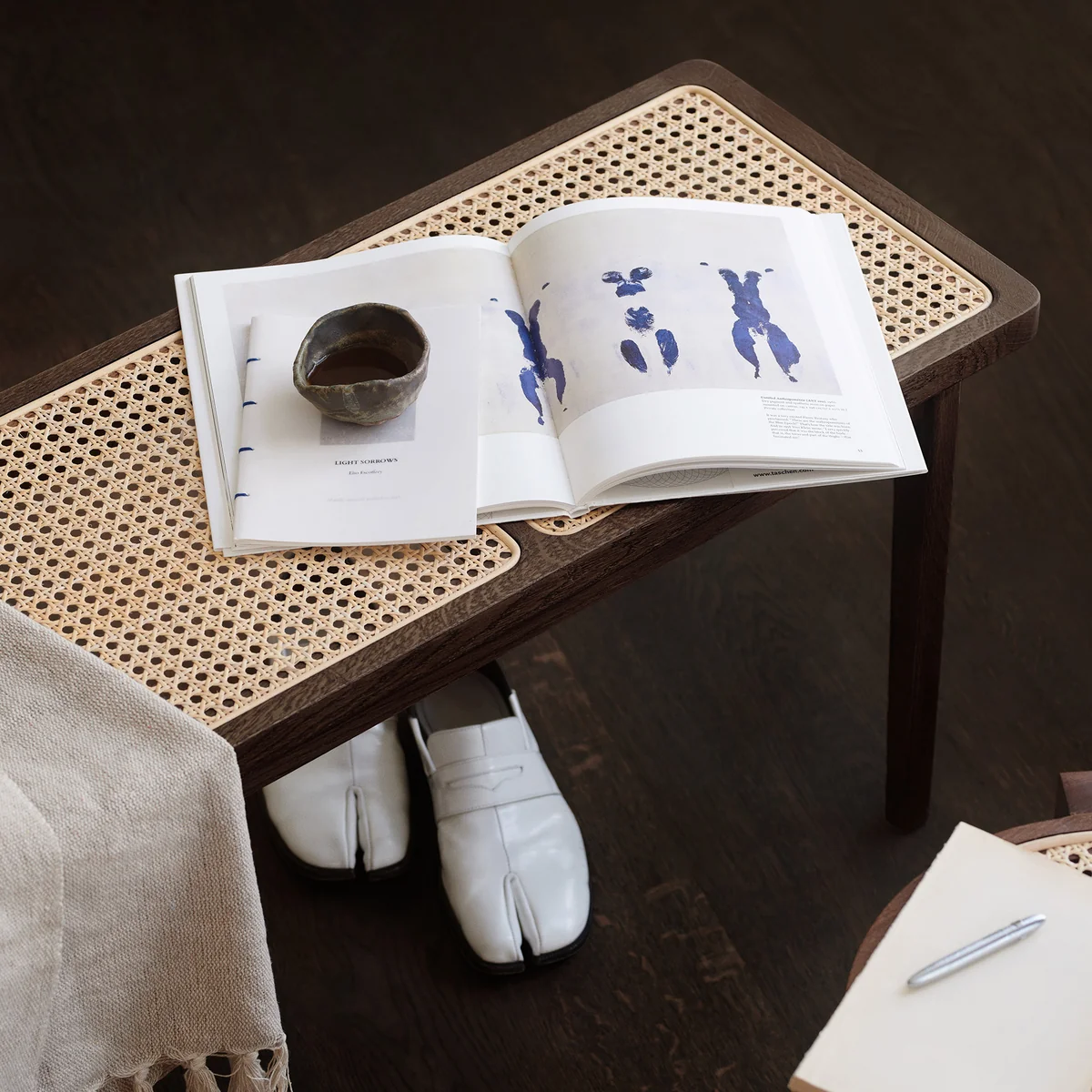 Le banc est composé d'une structure en bois massif. Le tressage en rotin est inséré dans le cadre selon un procédé traditionnel. Le tressage se fond joliment dans son environnement et souligne la simplicité de la construction du banc. Le banc peut être placé comme décoration dans la pièce et constitue également un siège pratique dans l'entrée, à la table à manger ou dans la chambre à coucher.
