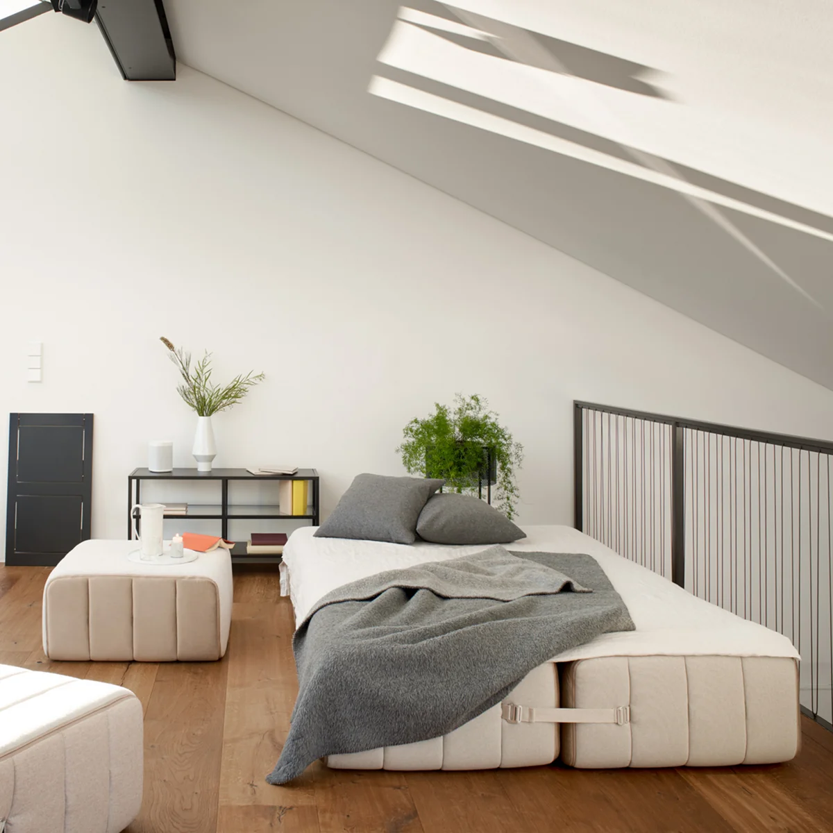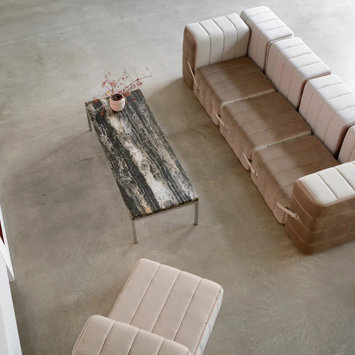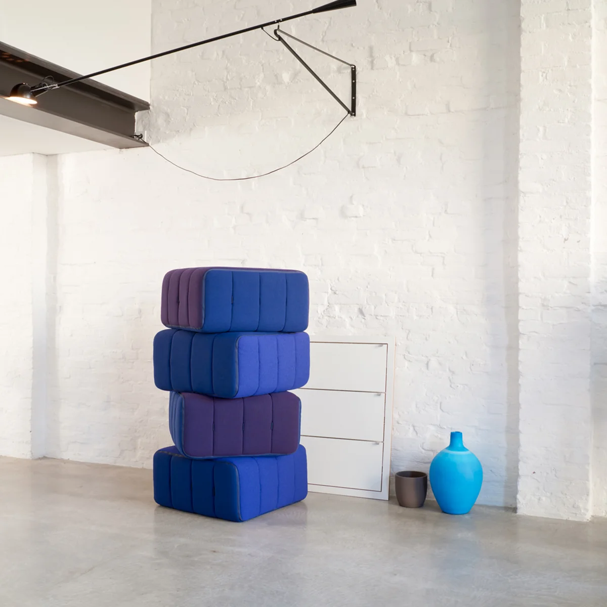 Le Curt canapé de Ambivalenz se compose de plusieurs modules de canapé qui peuvent également être utilisés individuellement comme pouf. Selon la variante, quatre, sept ou neuf modules de canapé s'agencent pour former un canapé confortable. Les poufs séparés sont reliés entre eux à l'aide d'un système d'assemblage. Ainsi, le canapé peut être Curt Le canapé s'adapte individuellement aux conditions du salon et peut être modifié à tout moment. Avec Curt une infinité de possibilités s'offrent à vous. Le canapé personnalisé apporte une touche personnelle à votre intérieur.