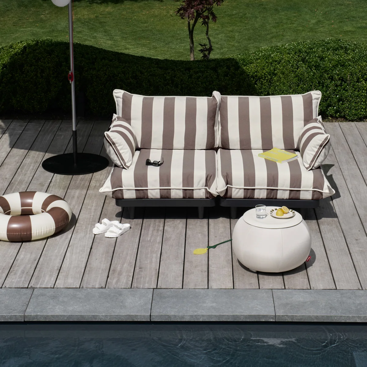 Le canapé Paletti Outdoor est recouvert d'une housse Sunbrella® hydrofuge, résistante aux UV et aux moisissures et certifiée OEKO-TEX®. Cette housse résiste à toutes les conditions météorologiques et est donc parfaitement adaptée à une utilisation en extérieur. Néanmoins, Fatboy recommande de ranger les coussins à l'intérieur en cas de pluie. Les housses des meubles de salon Paletti sont lavables à 30/40°. Le rembourrage agréable en mousse hybride de polyéther et en mousse hachée (mélangée et recyclée) invite à la détente et au repos.