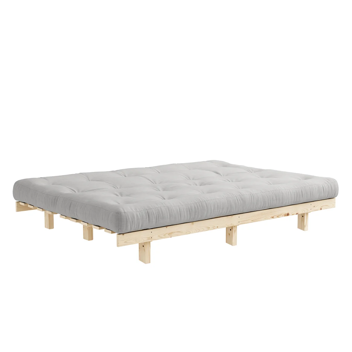 Structure en bois de pin certifié FSC. Housse de matelas en 80 % coton et 20 % polyester.