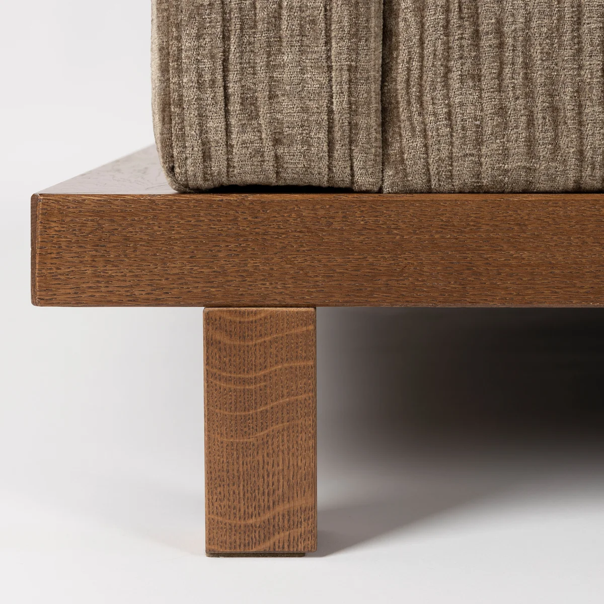 Les assises sont généreusement dimensionnées et recouvertes d'un tissu lourd et doux, dont le motif discret et irrégulier de rayures rappelle les nattes japonaises traditionnelles en jonc. Les couleurs naturelles soulignent l'expression sereine du meuble et lui confèrent une élégance intemporelle. Blossom est disponible en différentes tailles et s'adapte de manière flexible aux différentes conditions d'espace - de l'appartement compact au loft spacieux.