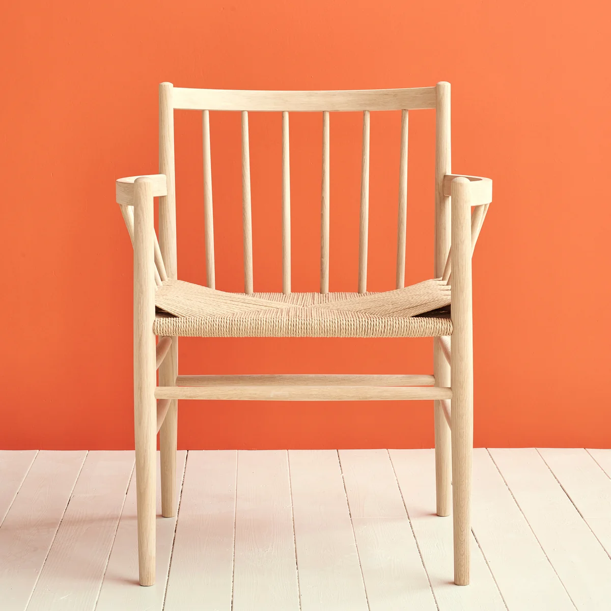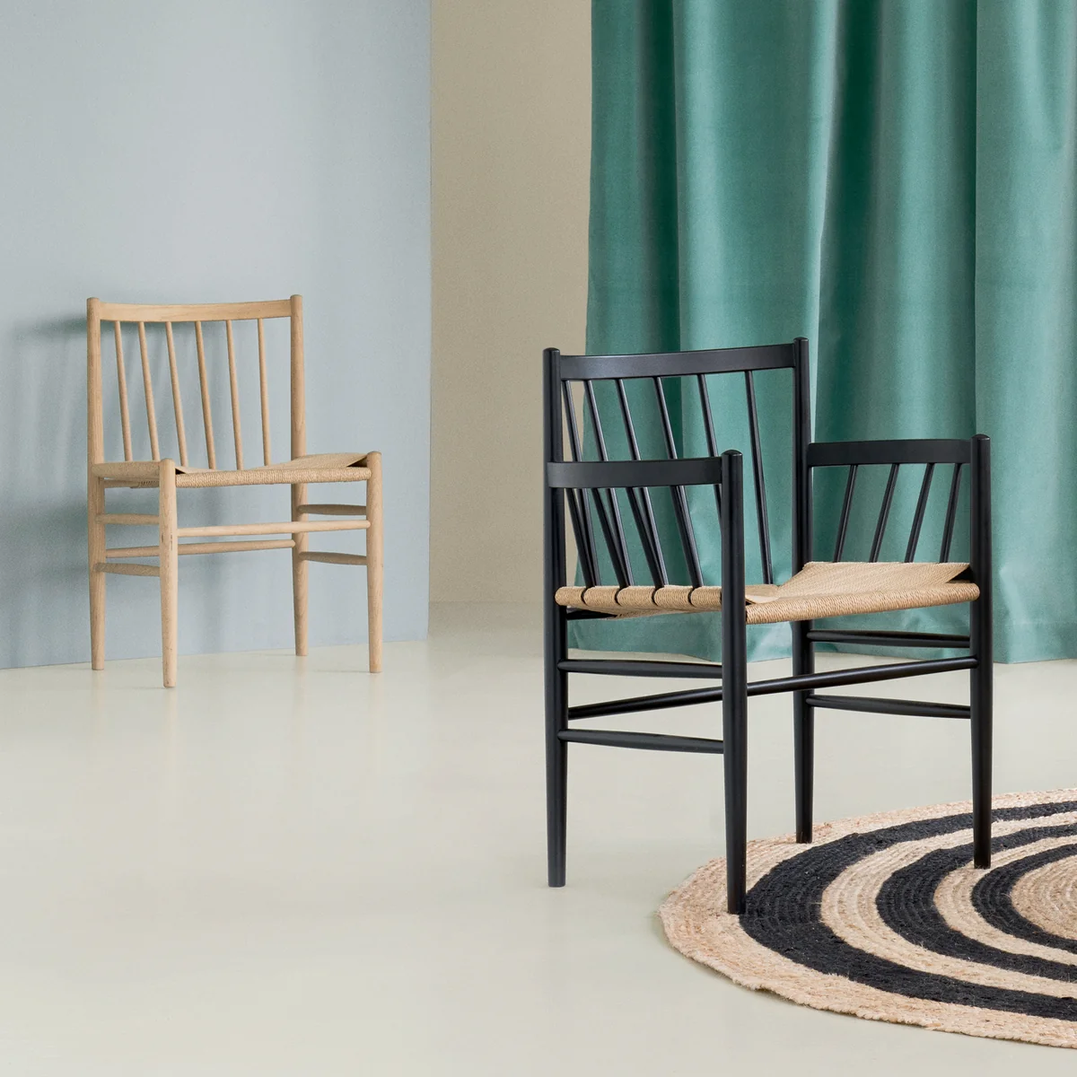 Des poteaux ronds en bois et une assise tissée caractérisent le design de la chaise et soulignent son aspect naturel. Depuis sa première fabrication dans les années 1960, la chaise n'a rien perdu de son charme et de sa qualité, de sorte qu'elle est encore aujourd'hui un meuble populaire dans toutes les ambiances. Le bois utilisé est certifié FSC® issu de forêts européennes.
