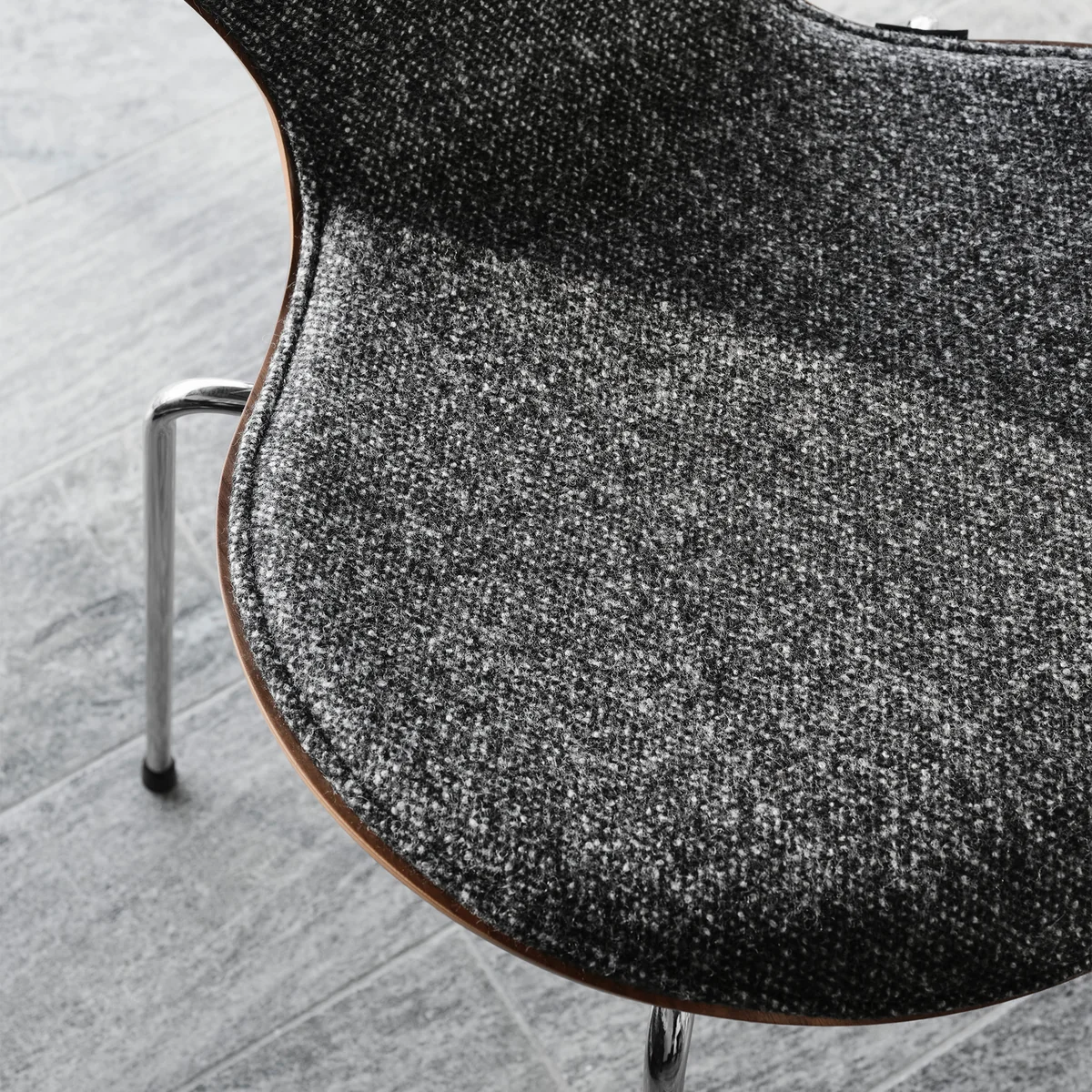 Le piètement est fabriqué en tube d'acier chromé. Le rembourrage varie selon le modèle. La chaise Série 7 est disponible en différentes versions et couleurs.