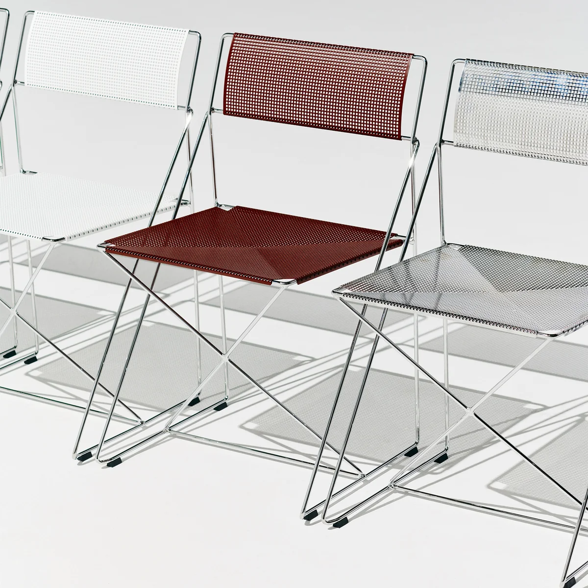Le design bien pensé se caractérise par une structure en X marquante, qui confère à la chaise non seulement une légèreté visuelle, mais aussi une flexibilité et une stabilité. Avec des couleurs d'assise soigneusement sélectionnées et des pieds en acier chromé, la chaise X-Line est un choix élégant et fonctionnel pour des intérieurs polyvalents. Grâce à son expression minimaliste, à son empilabilité et à sa durabilité, elle convient aussi bien aux espaces privés que professionnels.