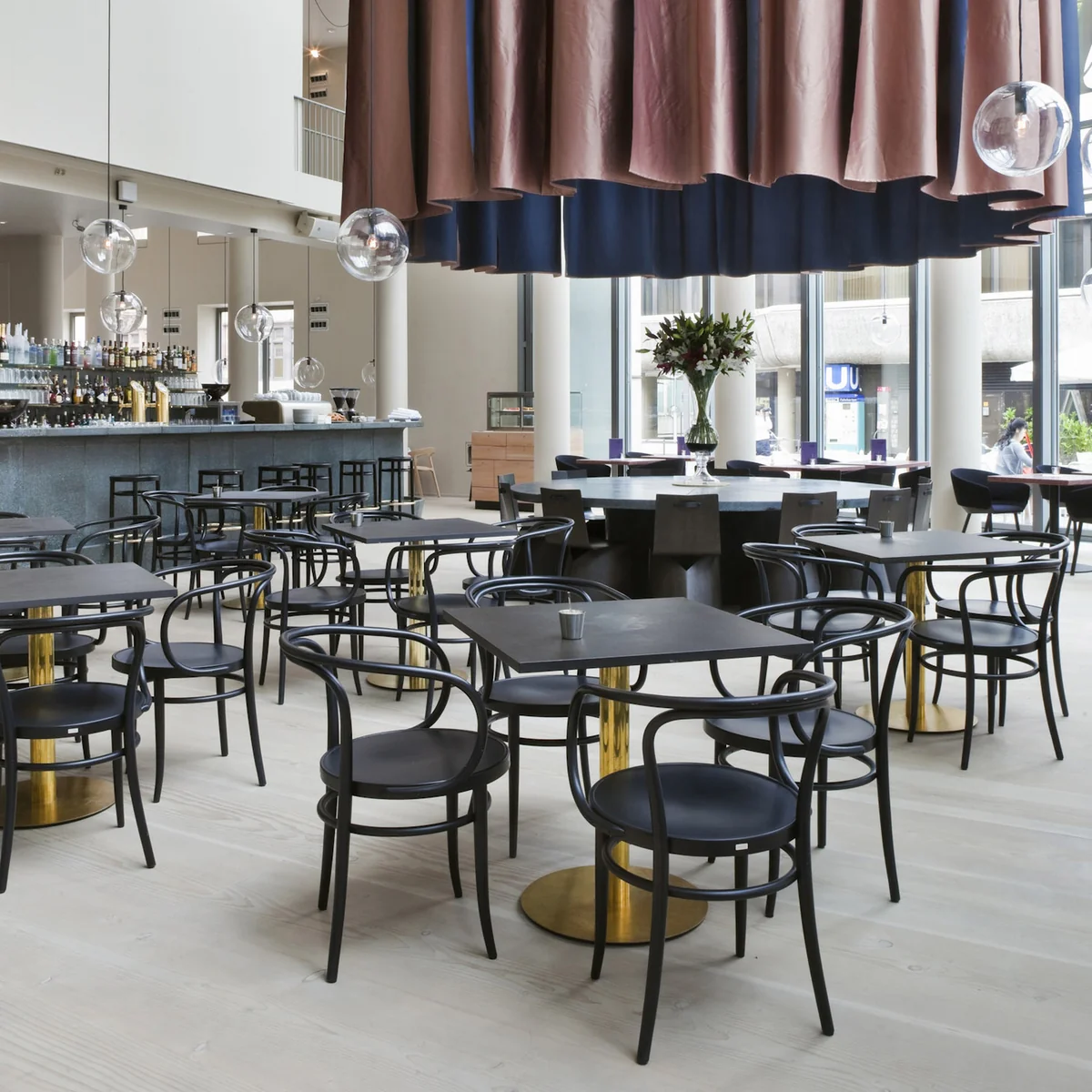 Thonet - 209 Chaise en bois courbé, cannage avec tissu de soutien en plastique / hêtre teinté noir (TP 29)