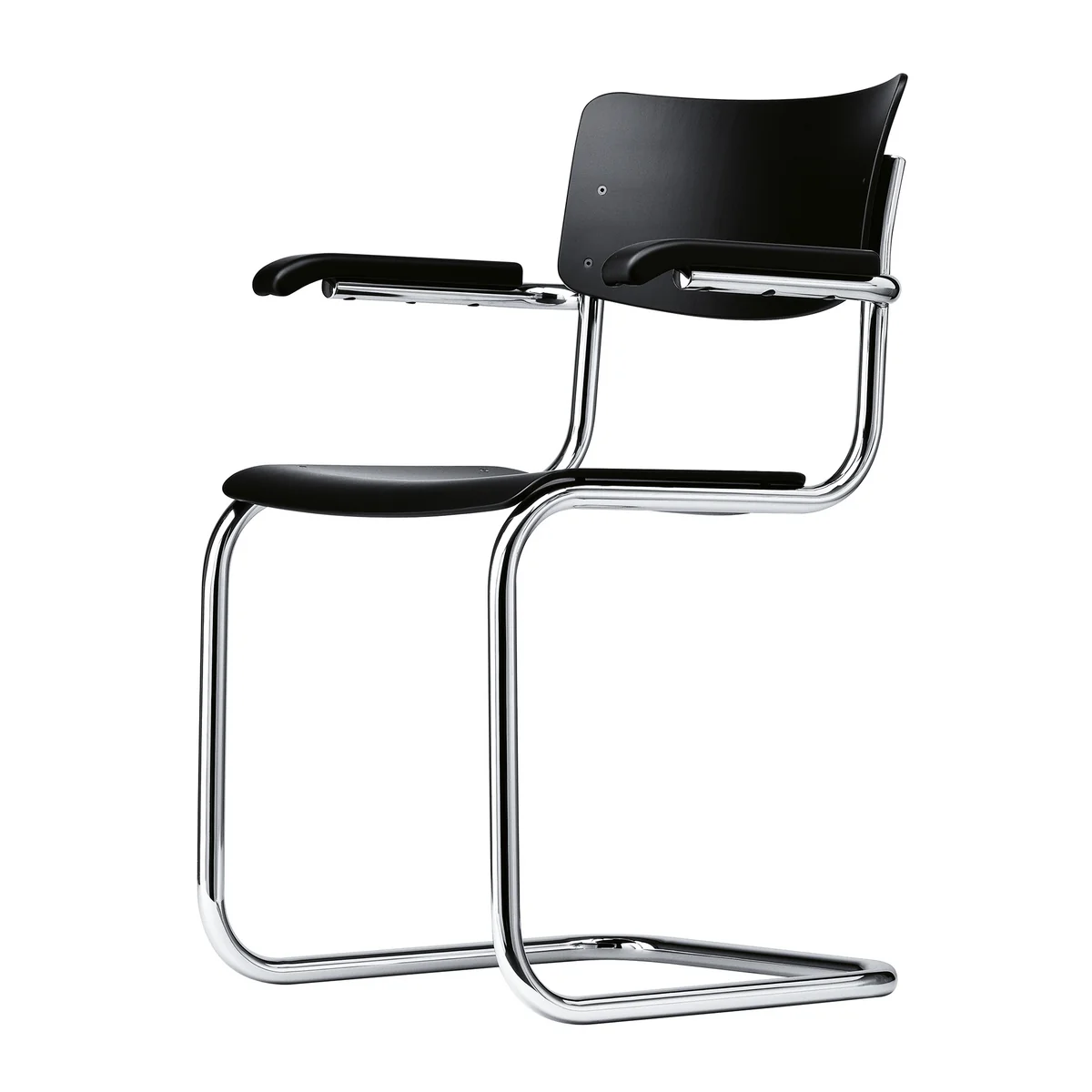 Le fauteuil cantilever a été conçu par Mart Stam en 1931 et est aujourd'hui le classique de la gamme Thonet. Stam combine sur le S 43 F, l’acier tubulaire avec des coques de contre-plaqué moulé et les accoudoirs et crée ainsi une confortable siège cantilever, qui vous invite à la flânerie.
