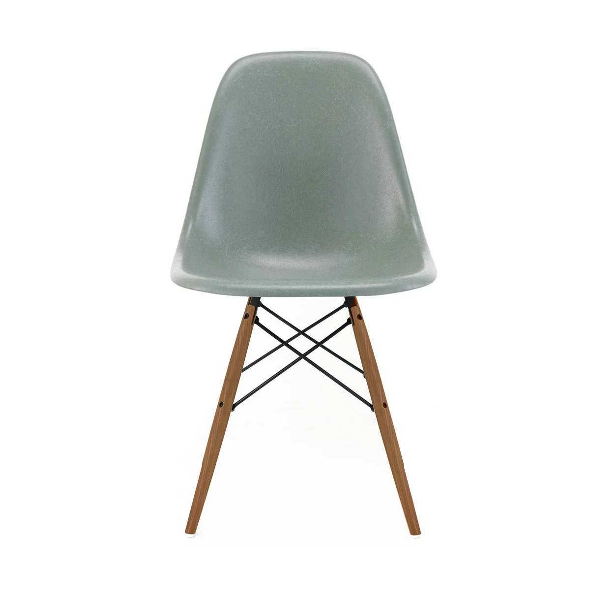 Der Eames Side Chair DSW ( D ining Height S ide Chair W ood Base) wurde 1948 von Charles und Ray Eames bei dem Wettbewerb ‚International Competition for Low-Cost Furniture Design‘ als Entwurf vorgestellt, gewann den zweiten Preis und ging nur wenig später in die Produktion. Die organisch geformte Sitzfläche wurde zunächst aus mit Fiberglasfasern verstärktem Polyesterharz gefertigt, das sich als besonders leicht formbar, komfortabel und angenehm in der Haptik erwies. Mit diesem für die Möbelindustrie neuem Material, gelang es den Designern, eine einzigartige Sitzschale im zeitlosen Design auf den Markt zu bringen.