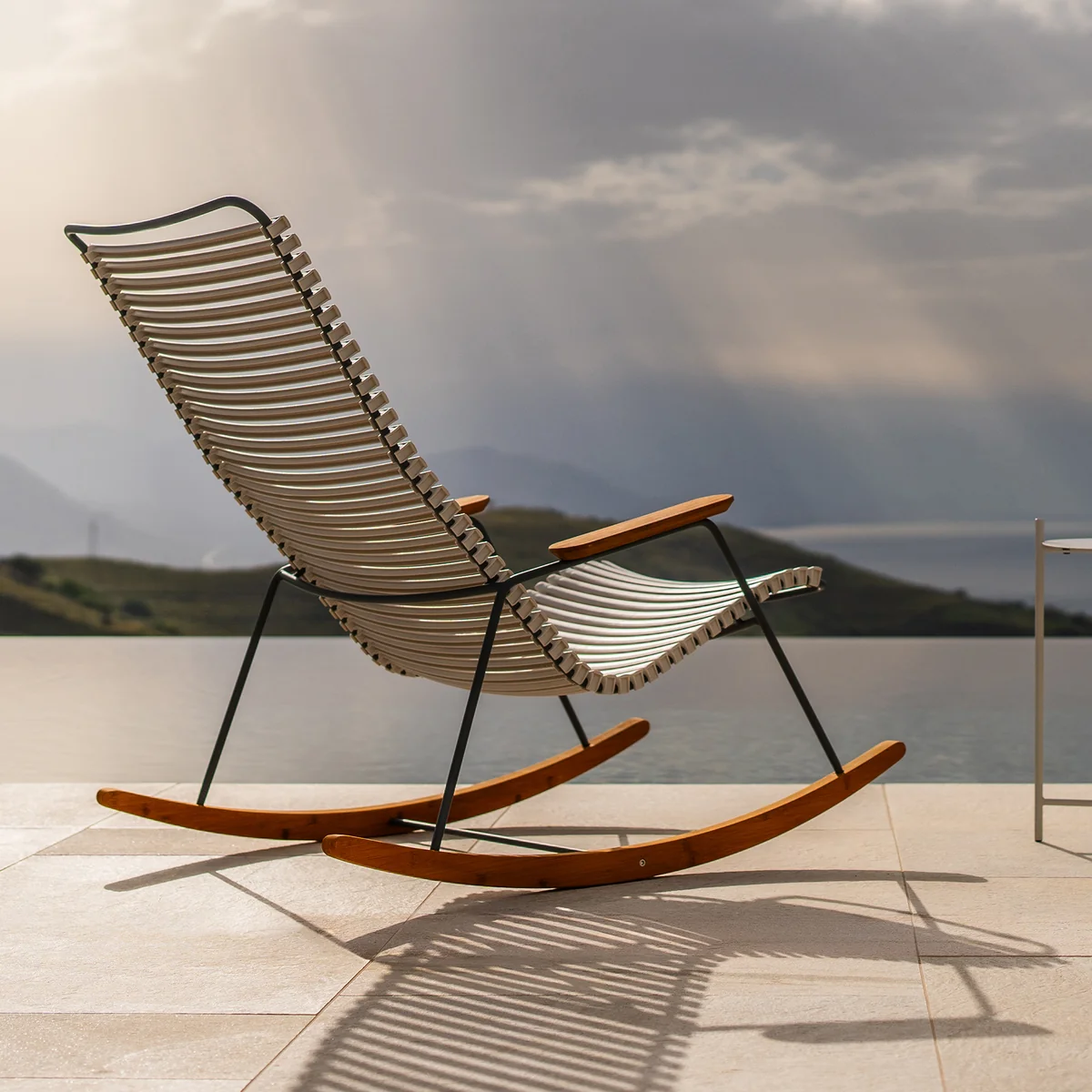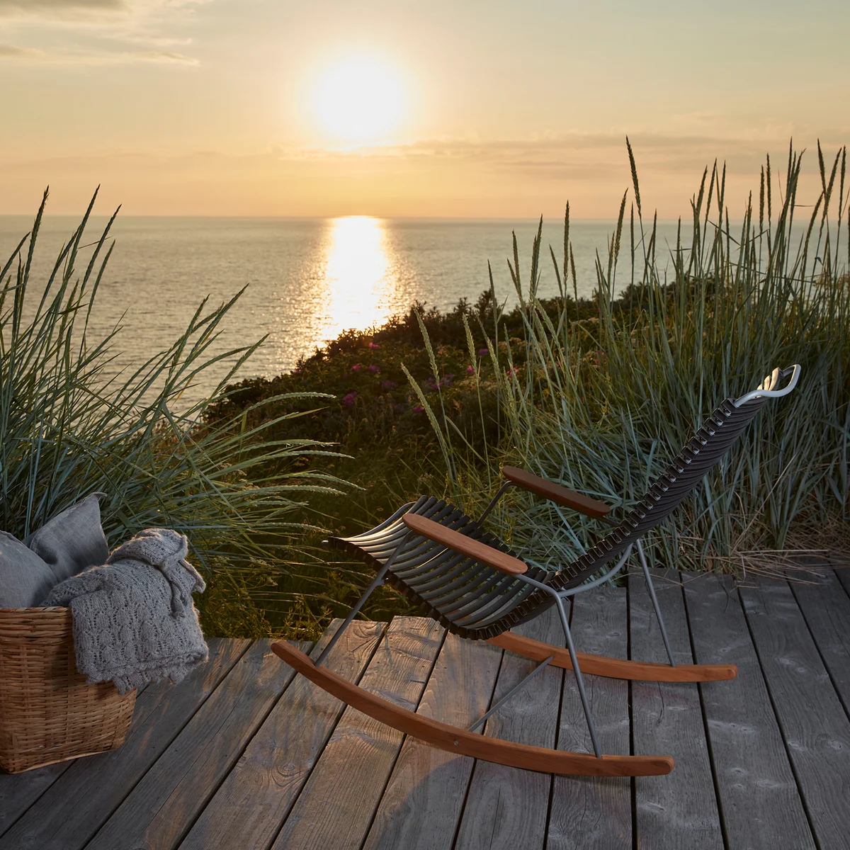 Le CLICK Outdoor Rocking Chair de HOUE allie un design scandinave moderne au confort apaisant d'un rocking-chair. Ce fauteuil à bascule élégant est idéal pour passer des heures de détente dans le jardin, sur la terrasse ou le balcon. Avec ses lamelles ergonomiques en plastique résistant aux intempéries et aux UV, il offre un confort d'assise optimal et s'adapte parfaitement à la forme du corps. La structure robuste en métal revêtu par poudre garantit stabilité et longévité, tandis que les doux mouvements de balancement procurent un sentiment de calme et de sécurité. Disponible en différentes couleurs, le rocking chair s'intègre parfaitement dans le décor. CLICK Rocking s'intègre parfaitement dans tout aménagement extérieur et devient rapidement l'endroit préféré pour les moments de détente. Alliant esthétique, fonctionnalité et confort, ce fauteuil à bascule est le complément parfait de tout espace extérieur.