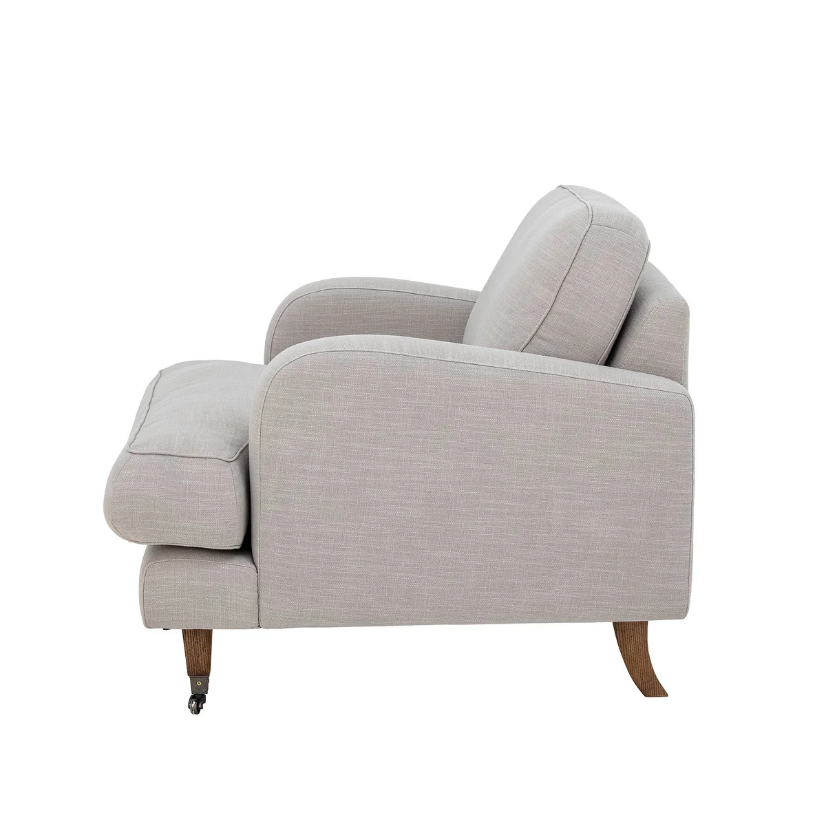Le fauteuil de détente Bloomingville Augusta impressionne par sa surface d'assise généreuse et ses formes modernes et sobres. Le revêtement en tissu ou en cuir de qualité supérieure confère au fauteuil non seulement un aspect luxueux, mais garantit également une expérience d'assise agréable et confortable. Les lignes épurées et les pieds en bois inclinés confèrent au fauteuil lounge une esthétique intemporelle.