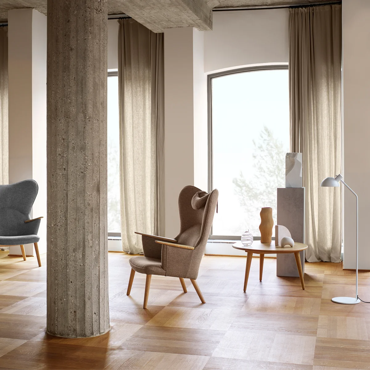 Affectueusement appelé Mama Bear Lounge Chair, le CH78 de Carl Hansen est défini par des courbes accueillantes qui offrent une étreinte chaleureuse. Son caractère particulièrement esthétique résulte de la manière dont il équilibre des formes douces et arrondies avec des géométries dynamiques et des détails délicats comme les griffes en bois sur les accoudoirs.