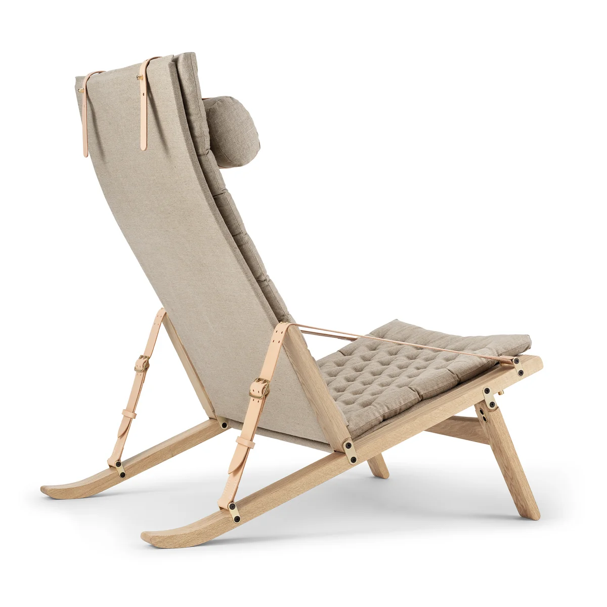 Le FK10 Plico Lounge Chair du duo de designers danois Preben Fabricius et Jørgen Kastholm pour Carl Hansen convainc par sa flexibilité, sans pour autant devoir renoncer à tout confort. Le design sobre de ce lounge chair pliable est le résultat d'un savoir-faire artisanal accompli. Le FK10 Plico fascine en outre par son mélange captivant de matériaux en bois de chêne massif et de toile de lin surpiquée. La solide Lounge Chair est équipée de coussins au niveau du dossier et de l'assise, qui sont recouverts de toile et assurent un confort maximal. Le dossier peut être entièrement rabattu si nécessaire.