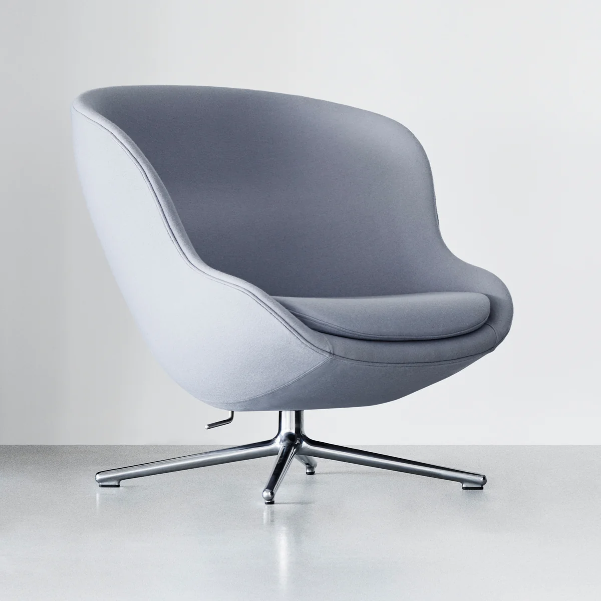 Norman Copenhagen fabrique le Hyg Lounge est fabriqué à partir d'une structure en aluminium et d'une coque d'assise renforcée par de l'acier. Le rembourrage est recouvert d'un tissu du fabricant Camira, composé de laine vierge douce.
