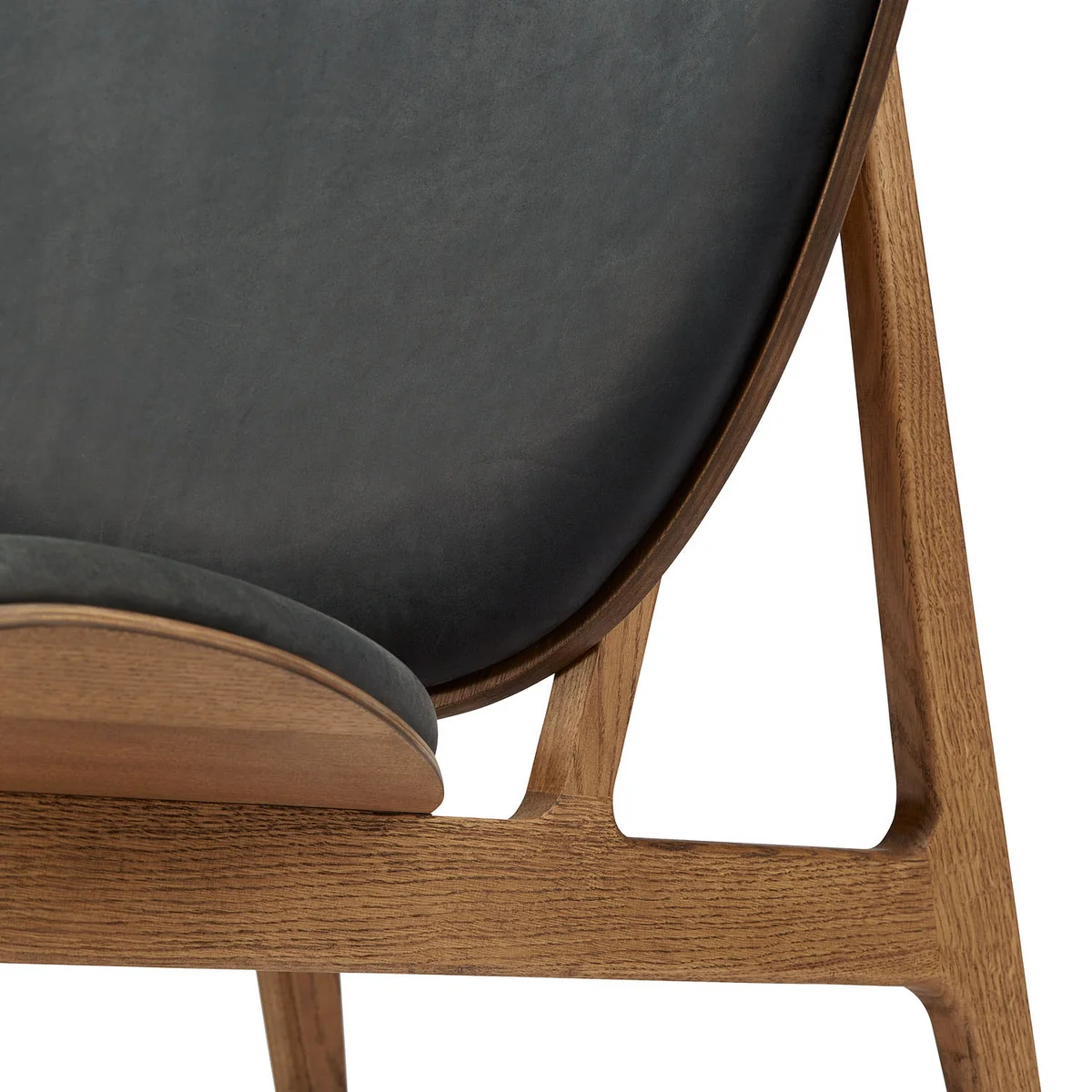 L'assise et le dossier sont fabriqués à partir de coques en placage de chêne de haute qualité, moulées par compression. Les deux coquilles sont pressées dans le même moule et entourent le corps dans une courbe douce et souple. Les jambes maintiennent les deux coquilles ensemble sans articulations visibles. Élégante et simple, mais robuste sans paraître encombrante, la Elephant Lounge s'intègre parfaitement dans n'importe quelle ambiance et offre un niveau élevé de confort d'assise.