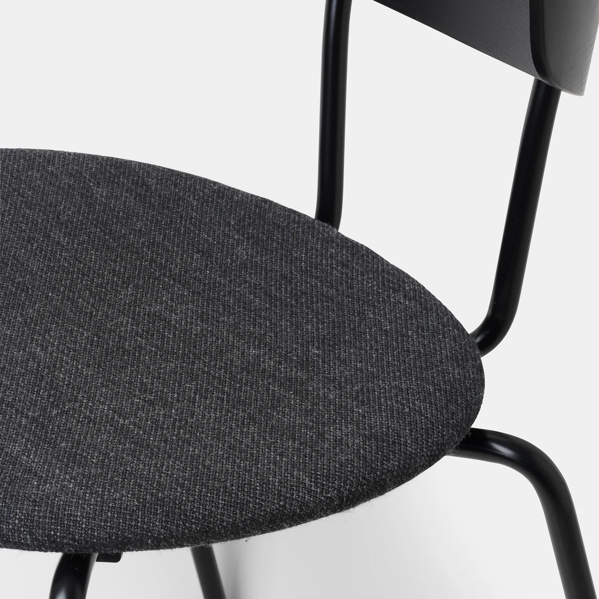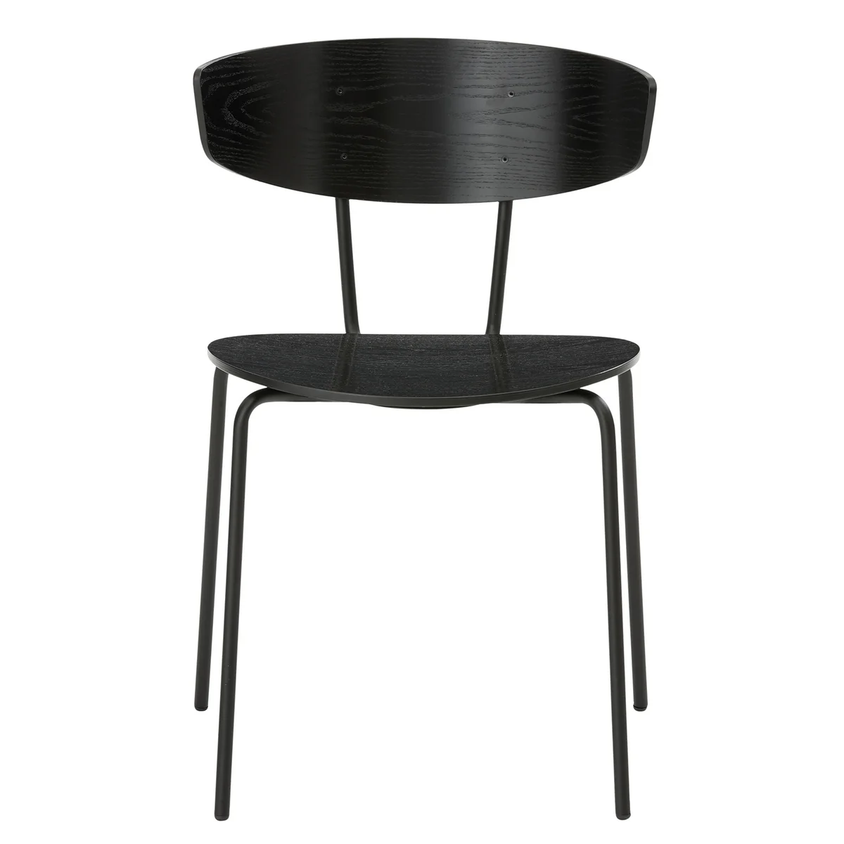 La chaise empilable de Herman Studio for Ferm Living a une structure en métal. L'assise et le dossier sont disponibles en différents bois laqués ou naturels.