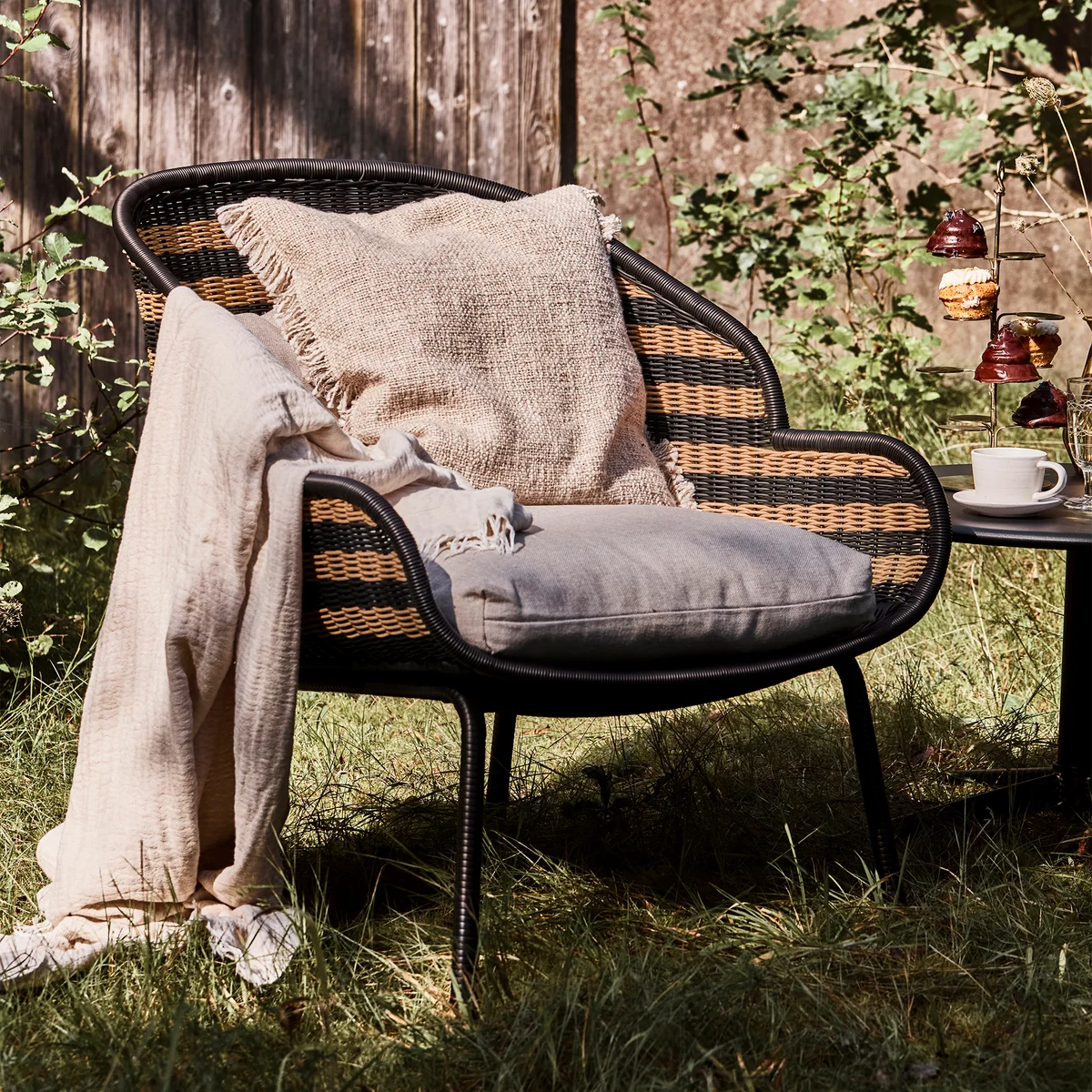 En l'accompagnant d'un coussin d'assise et d'une couverture, on obtient une chaise confortable et élégante qui met en valeur aussi bien le salon que la terrasse. Convient aussi bien pour l'intérieur que pour l'extérieur.