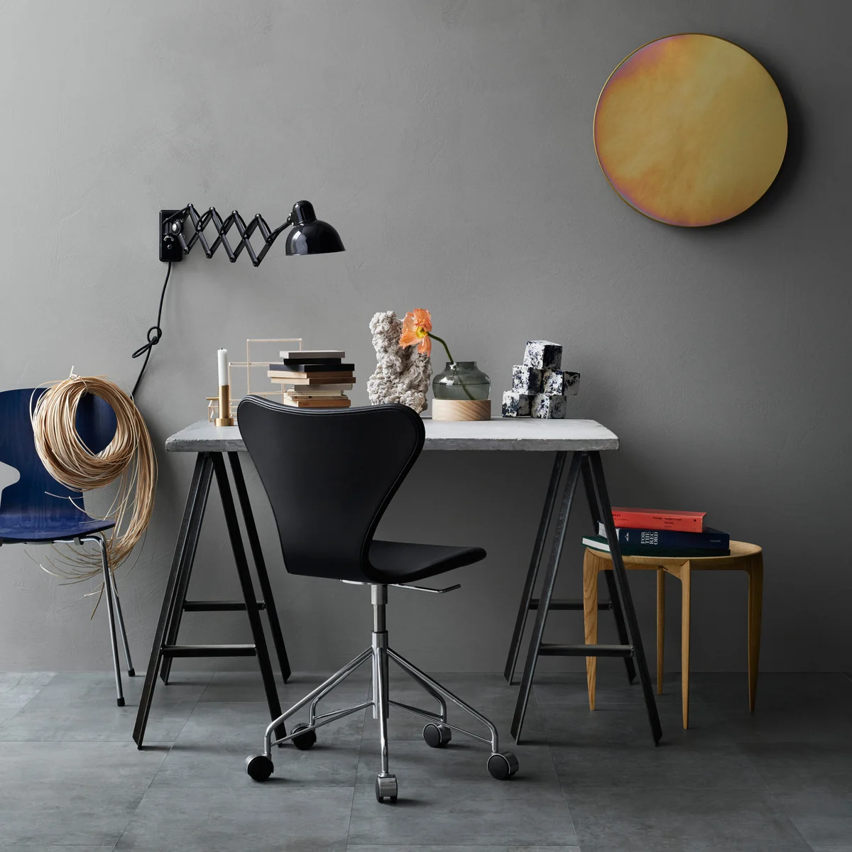 La chaise de bureau Série 7 de Fritz Hansen convainc par sa coque d'assise iconique et son piètement à cinq branches avec roulettes. Ce classique intemporel se transforme ainsi en chaise de bureau pratique et offre une flexibilité maximale au travail.