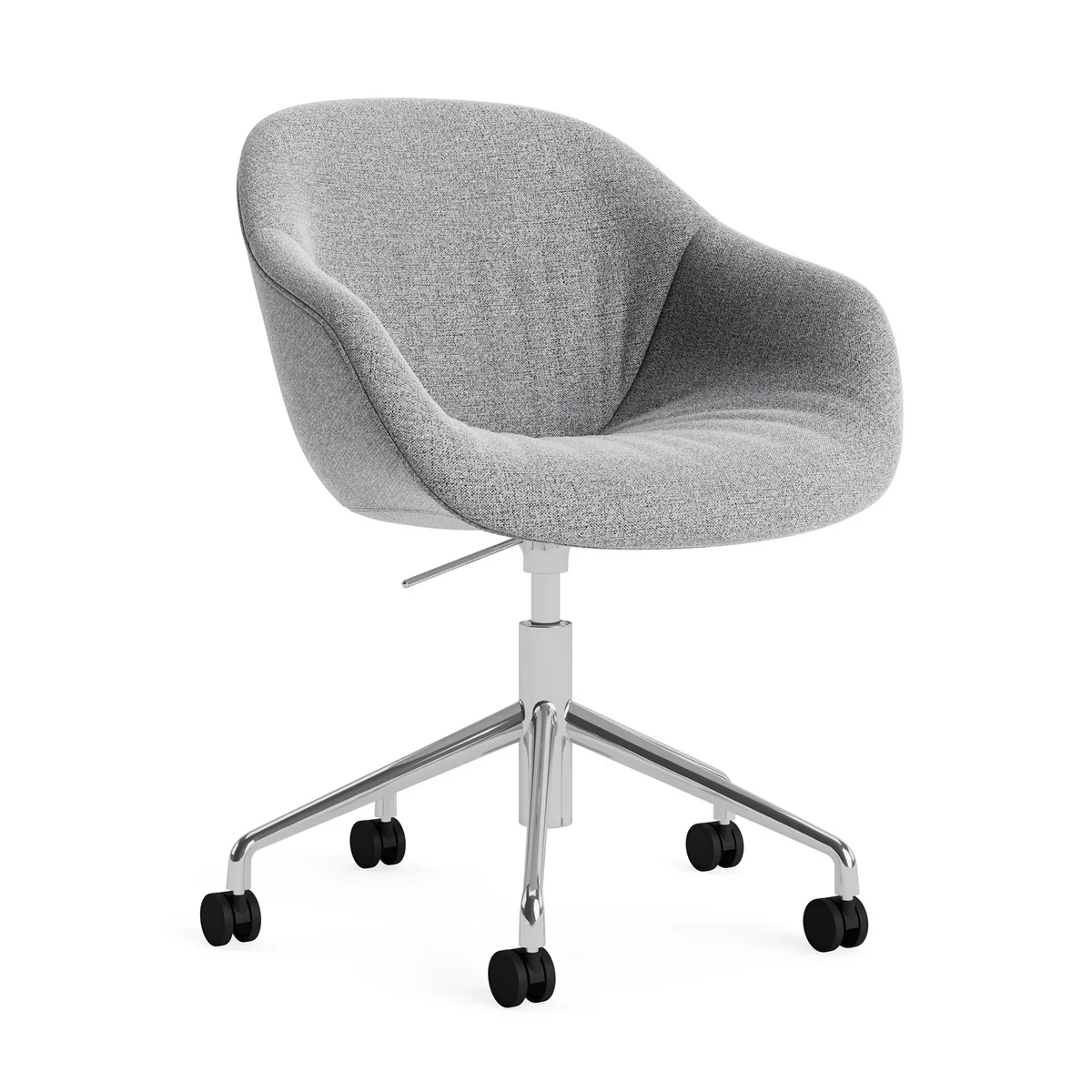 La chaise pivotante About A Chair AAC 253 possède des accoudoirs et un piètement à quatre pieds en aluminium. La coque d'assise est en plastique teinté dans la masse. Le piètement et le revêtement sont disponibles en différentes variantes.