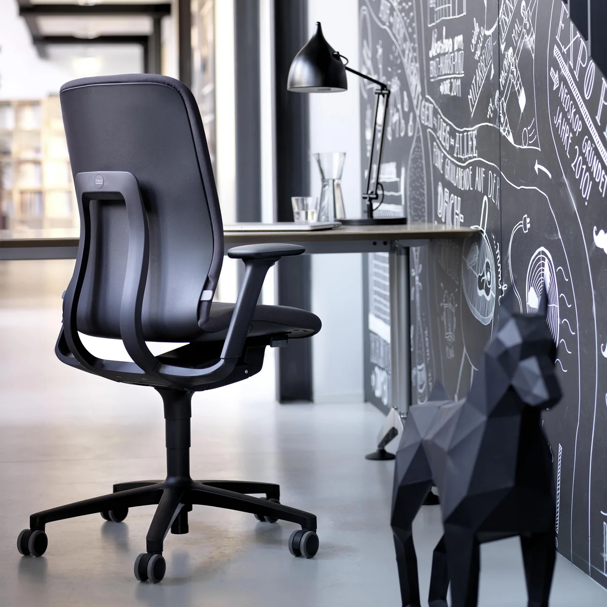 Le siège de bureau AT 187/7 est disponible avec des roulettes pour les tapis et les sols durs.