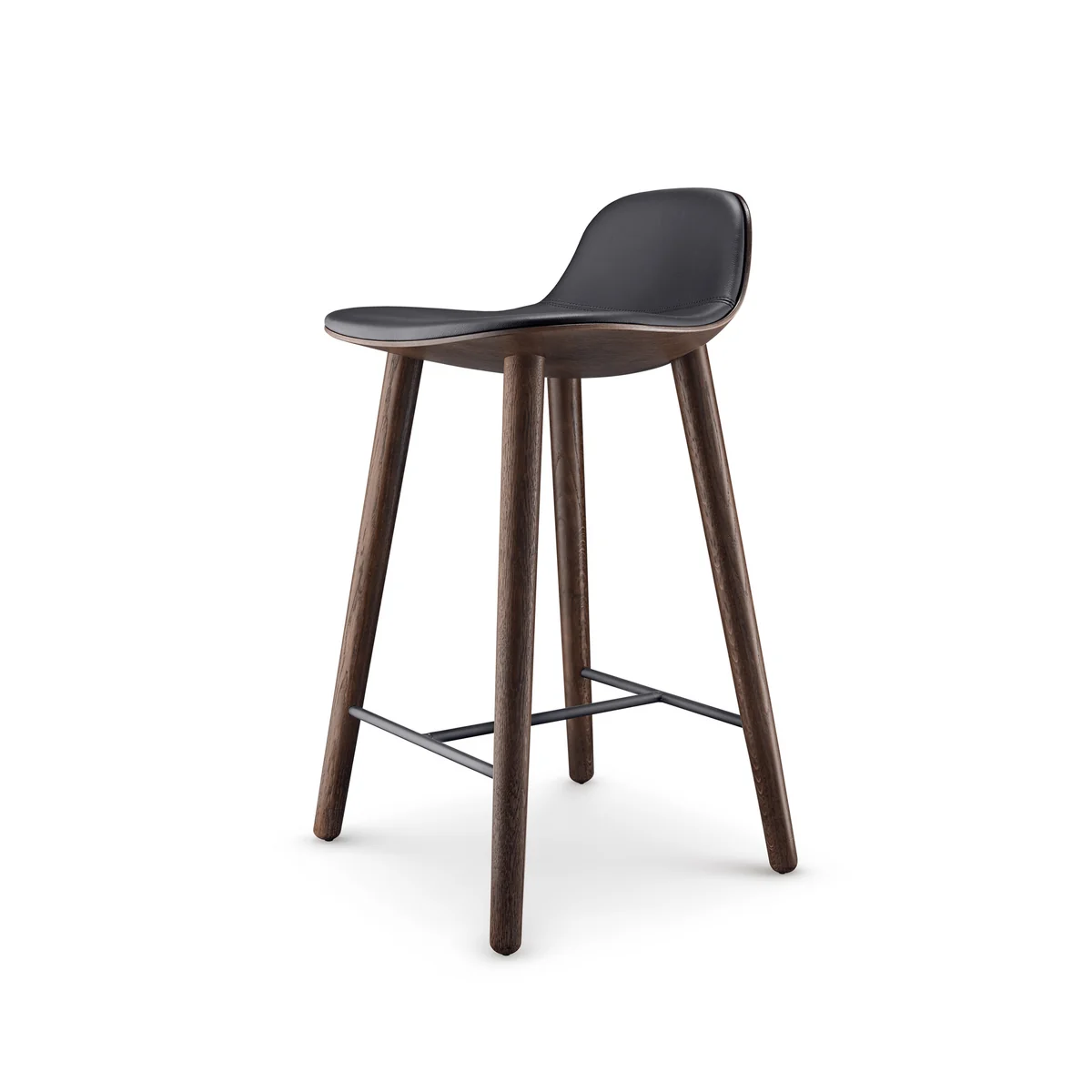 Le tabouret de bar se compose d'une structure en bois de chêne et d'une coque d'assise incurvée et bien pensée en placage de chêne 3D. L'assise est en mousse moulée et recouverte d'un confortable cuir. La chaise a un extérieur de forme organique et un intérieur doux - exactement comme le coquillage asiatique du même nom Eva Solo Abalone Le nom de ce coquillage est le même que celui de l'oreille de mer en allemand.