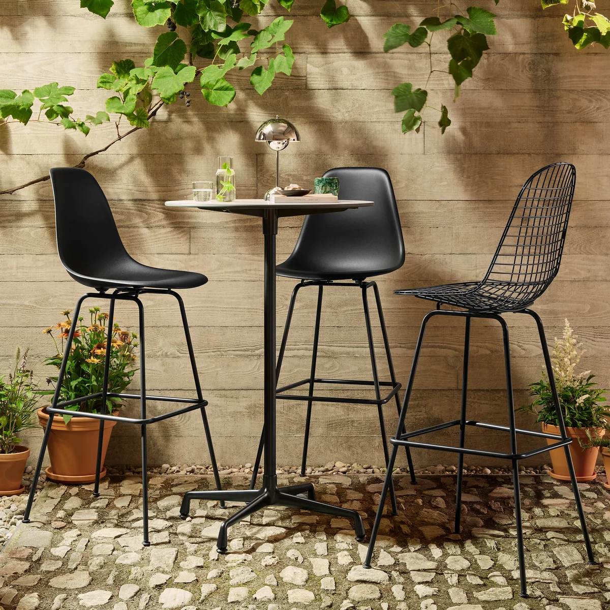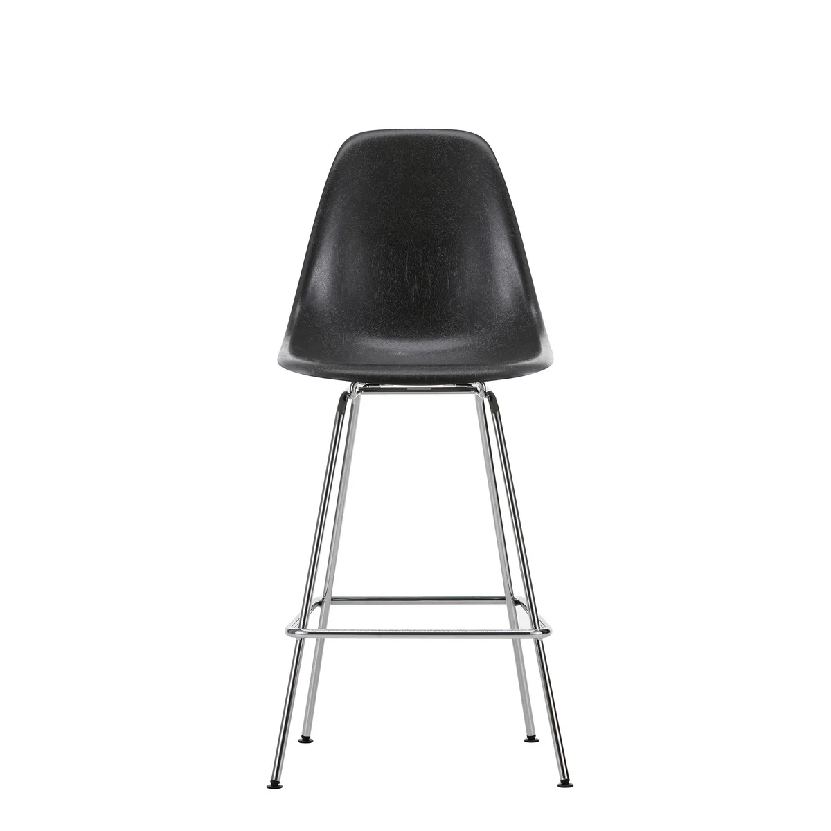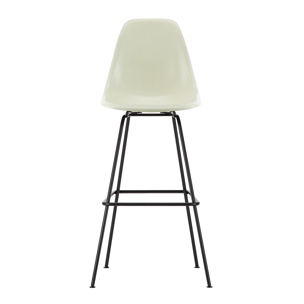 Charles et Ray Eames ont créé, avec les Eames Fiberglass Bar Chairs pour Vitra les premières chaises fabriquées industriellement en plastique. Leurs coques d'assise aux formes organiques sont disponibles avec différents piètements. Le piètement à quatre pieds de la Eames Fiberglass Chaise de bar est disponible en deux hauteurs : moyenne pour les bars de cuisine typiques et haute pour les tables hautes. Il est soit peint en noir par poudrage, soit chromé et dispose d'un repose-pieds.