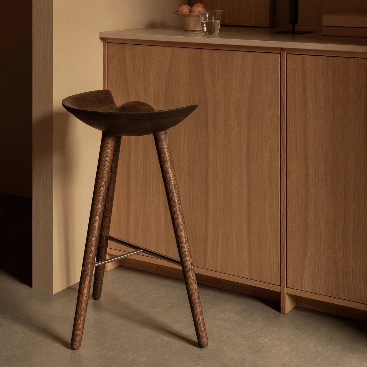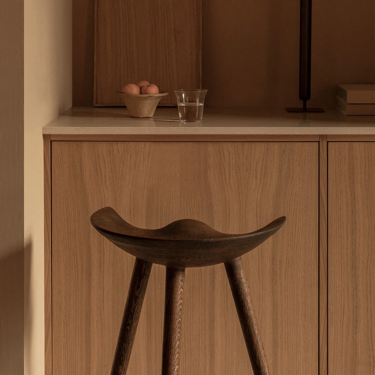 Audo produit le ML42 du bois de chêne. Le tabouret est fabriqué à la main au Danemark, avec un accent particulier sur la qualité et la réflexion sur l'artisanat scandinave classique.