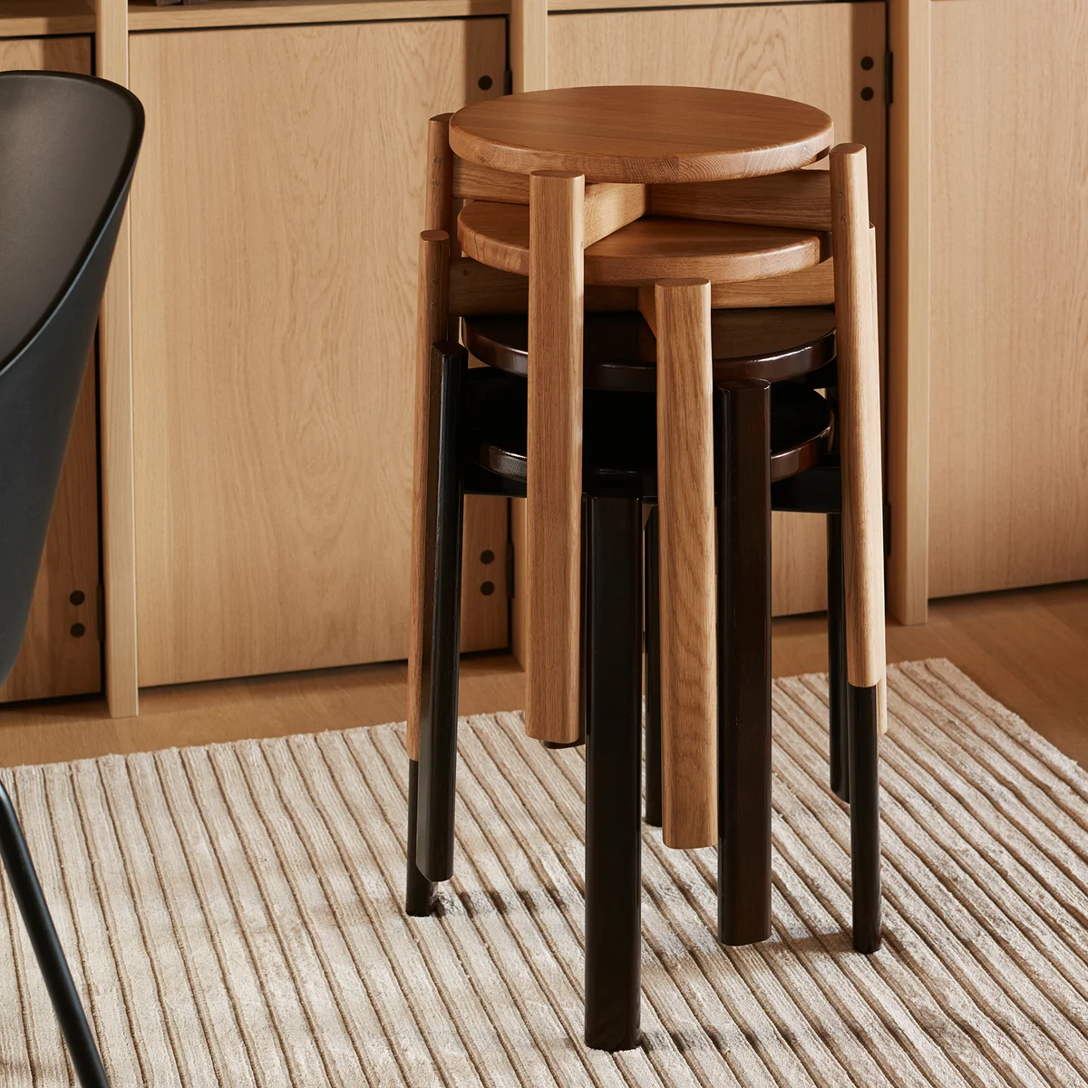 Le très fonctionnel Passage tabouret de Audo a une expression chaleureuse et une silhouette organique qui invite au toucher. Sa construction en bois massif apporte une sensation de douce sérénité dans la pièce - qu'il soit utilisé comme siège à la table de la salle à manger, comme tablette dans l'entrée ou comme table d'appoint dans le salon. Lorsqu'il n'est pas utilisé, le tabouret peut être empilé pour gagner de la place.