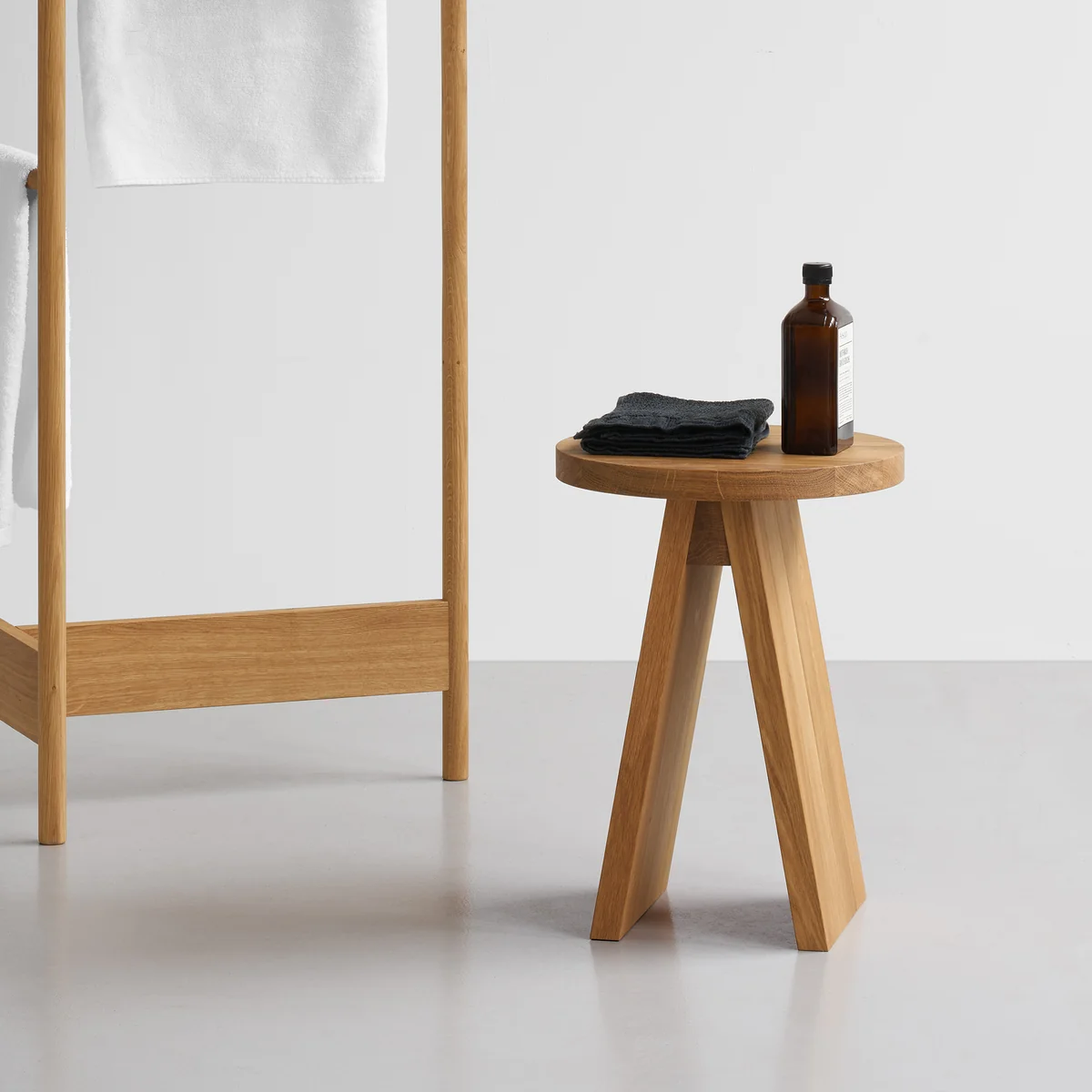 L'EK01 STOOL est fabriqué à la main en chêne européen massif dans un atelier spécialisé en Allemagne. Il est disponible en deux hauteurs et est livré entièrement monté. Que ce soit dans la salle de bain, le salon ou les espaces publics, ce tabouret allie fonctionnalité et élégance.