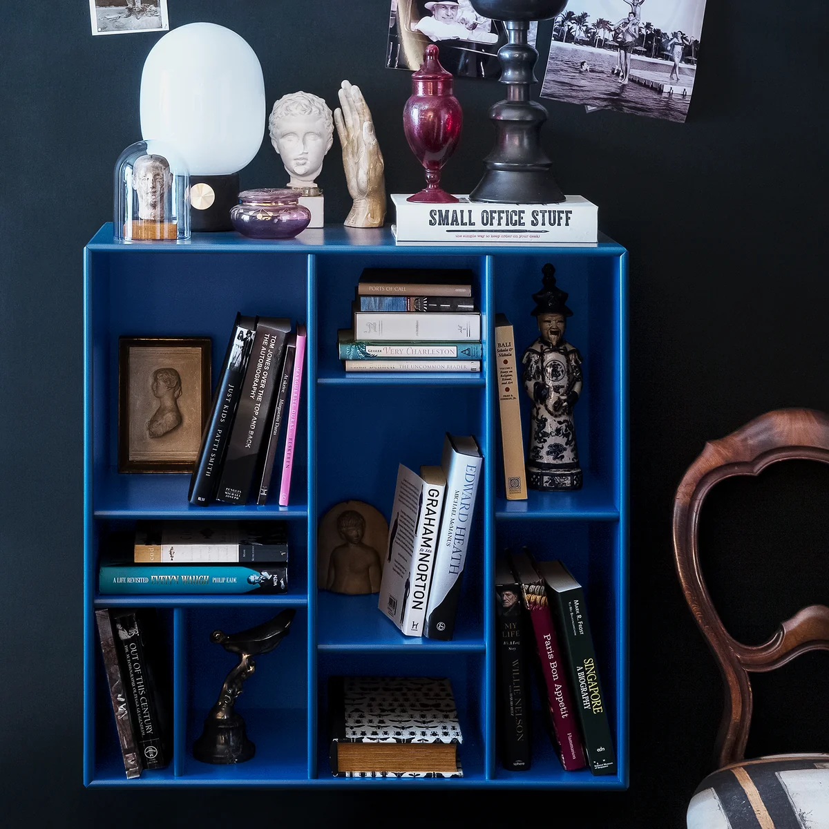 La tablette Compile Shelf de Montana est une tablette de séparation décorative conçue par Peter J. Lassen. Le module carré se compose de neuf compartiments de différentes tailles qui facilitent la présentation décorative de livres, vases et autres petits objets. Avec une profondeur de 30 cm, l'étagère prend peu de place et convient donc également aux couloirs étroits ou aux petites pièces.