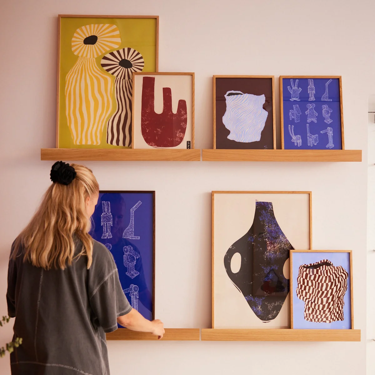 L'étagère est fabriquée en Europe et offre une flexibilité maximale. Elle peut être suspendue individuellement ou en groupe, afin de créer des possibilités d'aménagement individuelles pour la présentation de vos œuvres d'art.