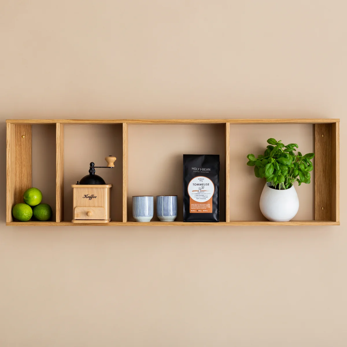 Le Foursquare étagère murale de We Do Wood est fabriquée en placage de chêne. Elle a été conçue par le designer Sebastian Jørgensen.