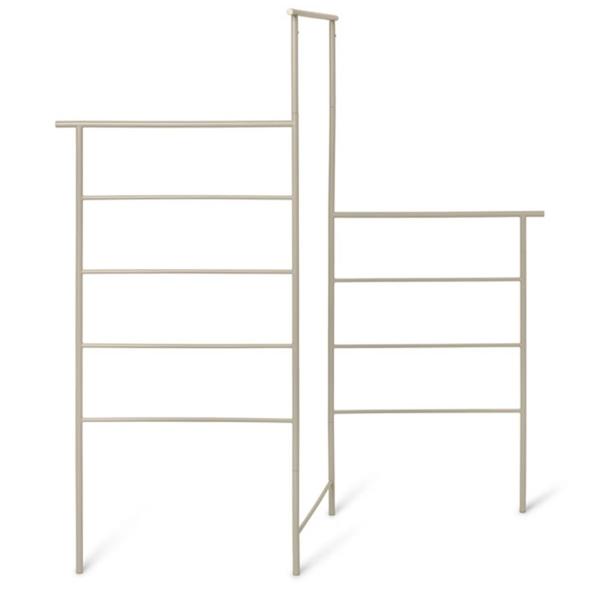 Constitué de trois panneaux en métal lisse et peint par poudrage, le porte-manteau Dora est une solution de rangement minimaliste avec une touche d'esthétique japonaise. Tandis que les cintres et les crochets trouvent leur place sur la section centrale, les serviettes, les écharpes et bien d'autres choses encore peuvent être suspendues sur les montants des sections extérieures.