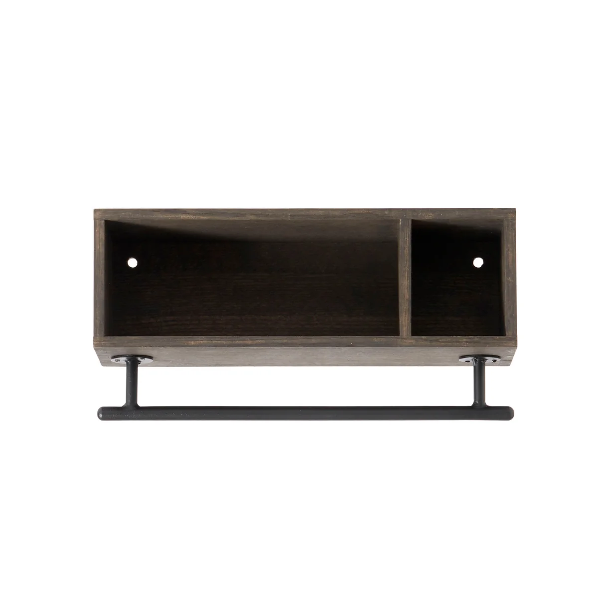 Étagère murale minimaliste en chêne teinté et fer.