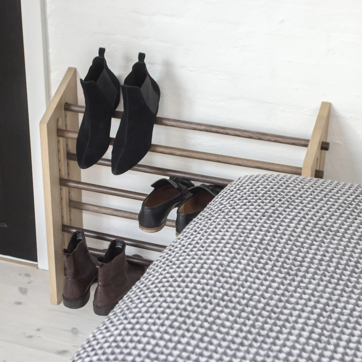 Le Roon & Rahn Moodstand étagère à chaussures de We Do Wood est une pièce variable qui assure l'ordre dans l'entrée. Elle s'adapte parfaitement aux besoins individuels en plaçant les barres de l'étagère comme on le souhaite. L'étagère est donc parfaite pour le quotidien et peut être combinée de multiples façons. Fixée au mur ou posée sur le sol, l'étagère à chaussures attire le regard et se révèle très fonctionnelle. Le site Roon & Rahn Moodstand L'étagère à chaussures de We Do Wood est disponible en différentes tailles et couleurs.
