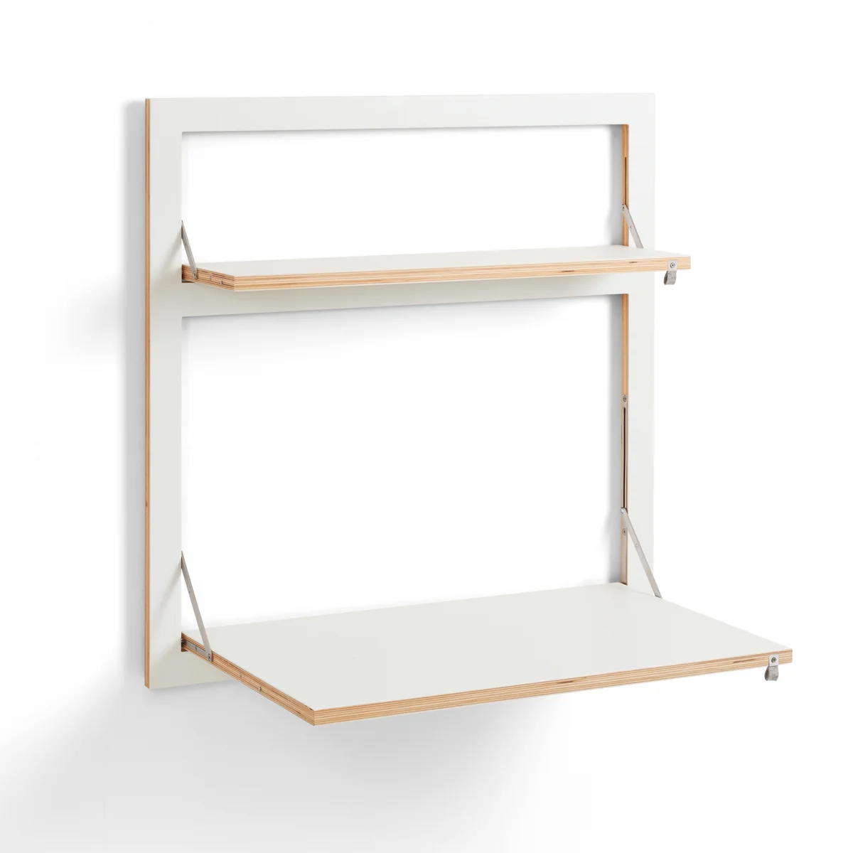 Fläpps Le secrétaire/in de Ambivalenz est un secrétaire mural fonctionnel et peu encombrant qui se déplie. Monté à n'importe quelle hauteur et donc utilisable comme place assise ou debout, le secrétaire mural séduit, une fois replié, par sa profondeur extrêmement faible de seulement 3 cm. Déplié, le secrétaire devient un véritable talent multifonctionnel. Fläpps Le secrétaire peut être utilisé comme bureau, table à manger, table de bricolage et bien plus encore.