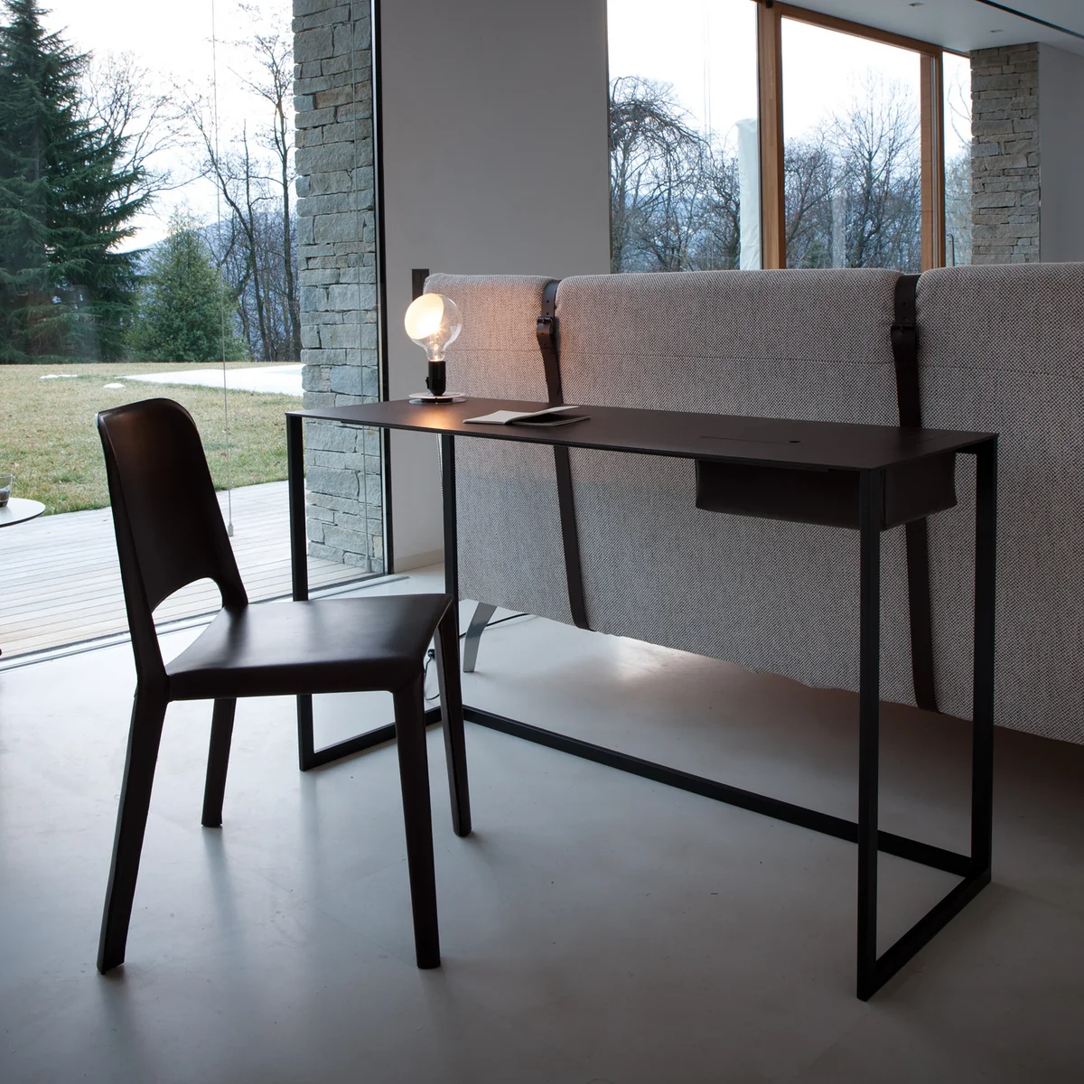Zanotta - Bureau Calamo, structure : acier laqué noir, plateau : 801 en cuir pigmenté noir