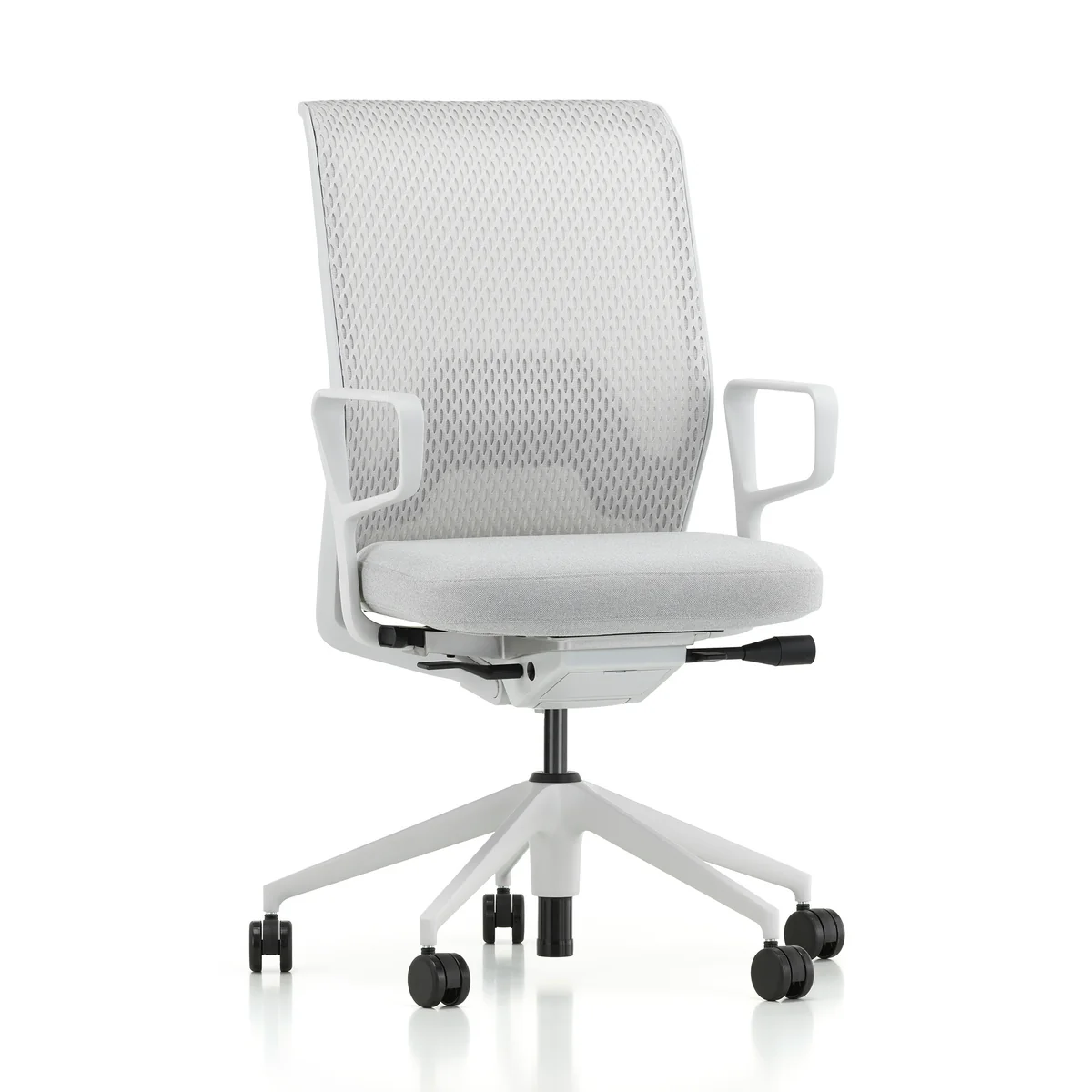La famille des sièges de bureau pivotants se compose de nombreux éléments qui permettent de répondre aux exigences les plus diverses en matière d'esthétique, de matériaux, d'utilisation et de prix. À partir des différents modèles de tissus de revêtement ( Mesh , Soft et Trim), il est possible de créer plus de 8000 sièges différents. ID Chairs en combinant 4 mécanismes, 3 accoudoirs, 3 piètements et 2 couleurs de cadre.
