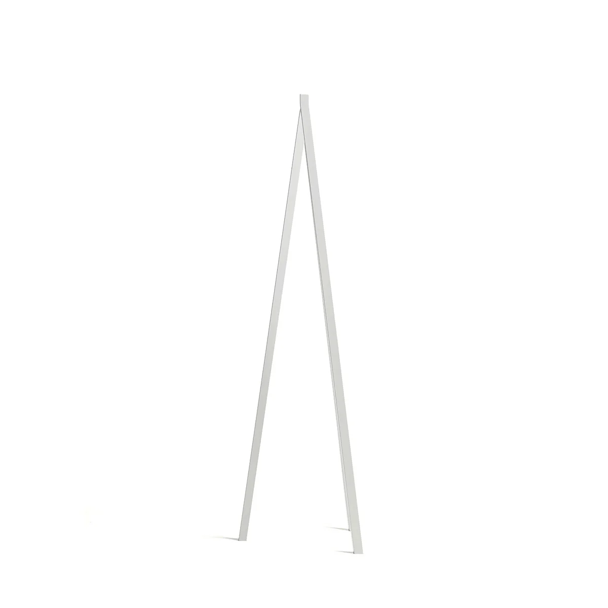 Les tréteaux sont une simplification du chevalet de sciage tel qu'on le connaît dans l'industrie. Ils sont en acier revêtu par poudre et sont disponibles en deux tailles : la variante un peu plus basse pour la table à manger ( Loop Stand Frame ) et la plus haute pour le bureau ( Loop Stand Frame High ). Comme les deux tréteaux sont livrés par set de deux, ils conviennent parfaitement comme base d'un plateau de table. Les trois pieds forment une base plus que solide. Dans les versions plus hautes, les tréteaux se transforment en portemanteau Loop .