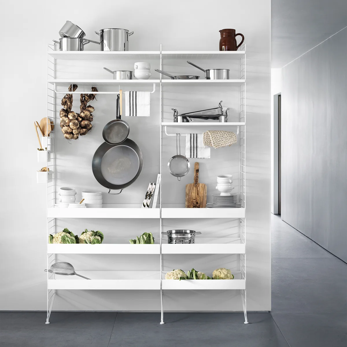 La combinaison de rangement de String offre un mélange parfait de fonctionnalité et de design scandinave intemporel. Avec ses étagères ouvertes et ses armoires fermées, elle crée un espace de rangement polyvalent, idéal pour les livres, la décoration, la vaisselle ou les objets du quotidien. Les lignes épurées et le design minimaliste font de cette combinaison un élément de style dans chaque espace de vie.