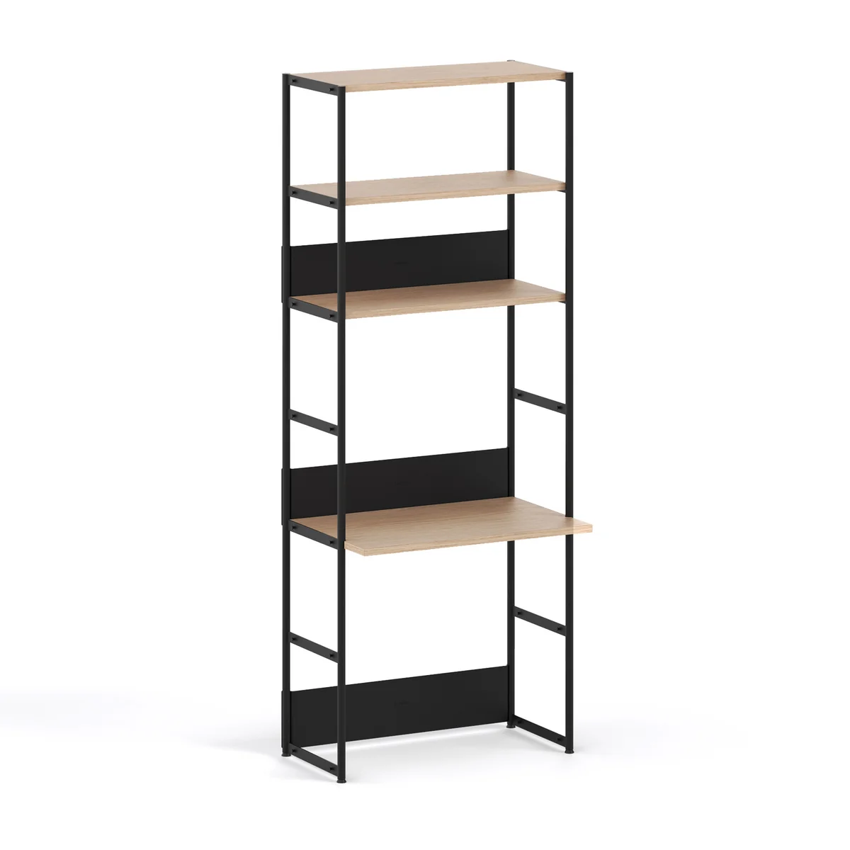 Les systèmes de bureau se caractérisent par une structure en acier et des étagères en bois écocertifié.