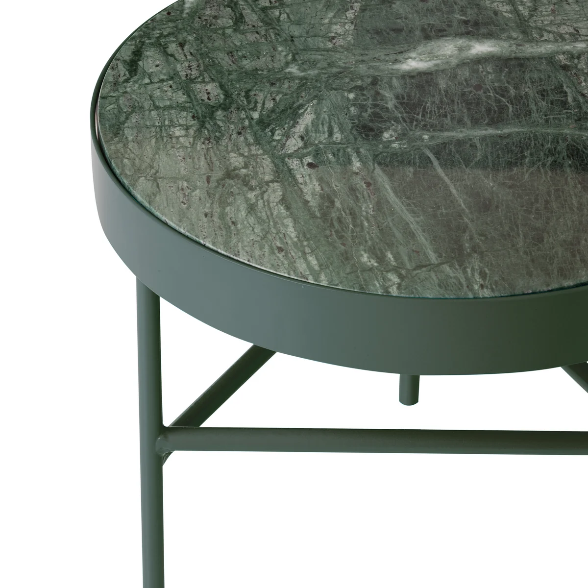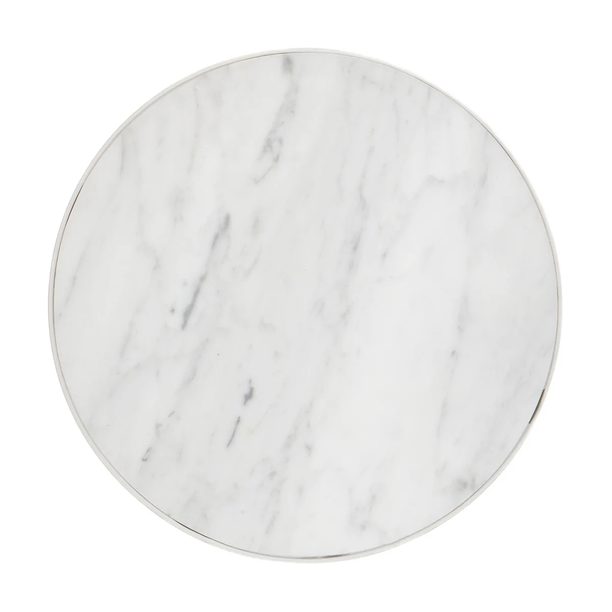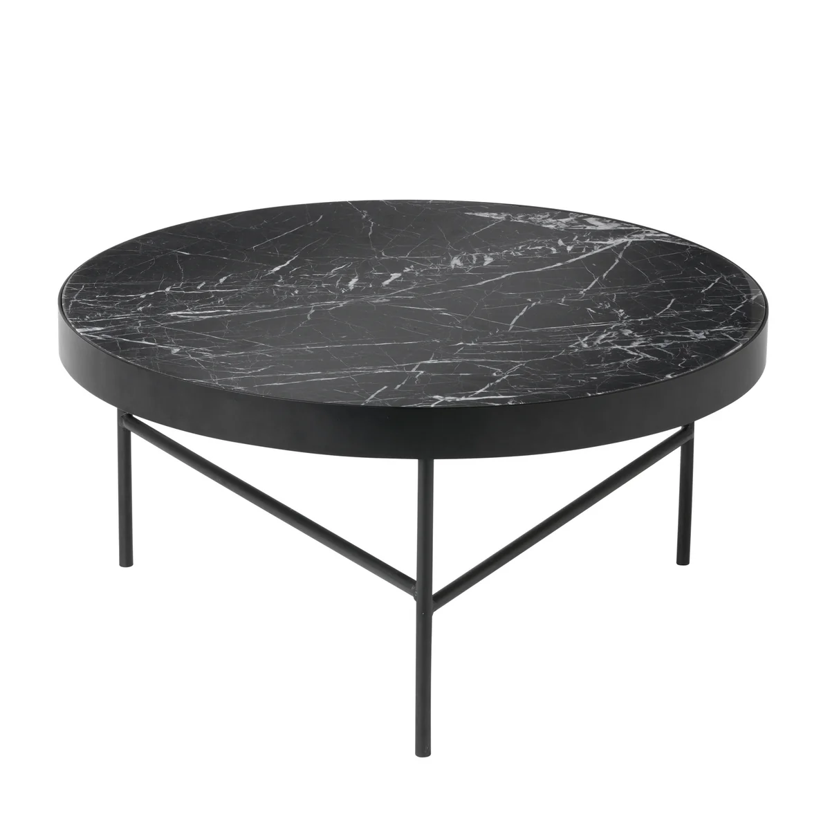 La table en marbre de Ferm Living est disponible en plusieurs hauteurs, diamètres et couleurs.