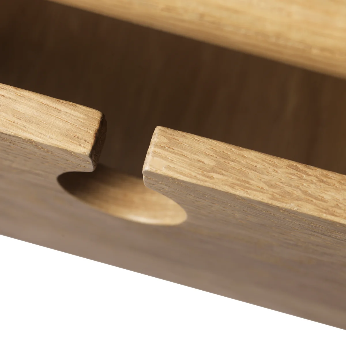 Le produit est fabriqué en bois de chêne et est disponible en différentes couleurs et tailles.