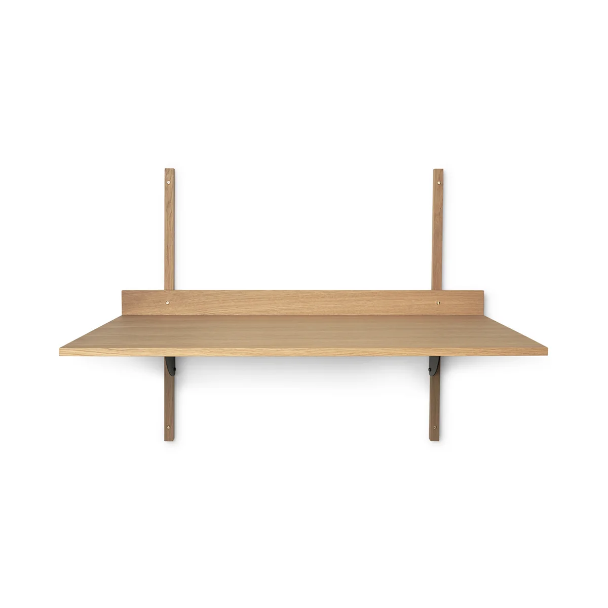 Le Sector Le bureau de Ferm Living se caractérise par sa simplicité robuste et la combinaison classique de bois et de laiton. Il peut être utilisé comme une surface indépendante ou combiné avec le Sector Les étagères murales peuvent être combinées de toutes les façons possibles pour créer un espace de travail intégré et cohérent. Un petit bord au bout de la table forme une petite surface étroite qui est idéale pour les notes manuscrites ou une photo préférée.